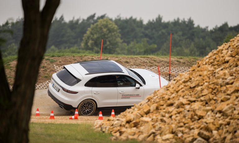 Az időjáráshoz a leginkább a Cayenne tereppályák illettek, és ha eddig azt gondoltad, hogy a Porsche szabadidő-autója csak a városba való, akkor ideje megváltoztatnod a véleményed. Nem volt más dolgunk, mint off-road módba kapcsolni, hogy a meredek kapaszkodókat, féloldalas mászást és hajmeresztő lejtőt még utcai gumikon is simán teljesítse a Cayenne. A körkörös kamerával a dombtetőn is HD felbontásban láttuk, mi van előttünk, ami elég menő funkció.