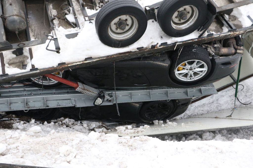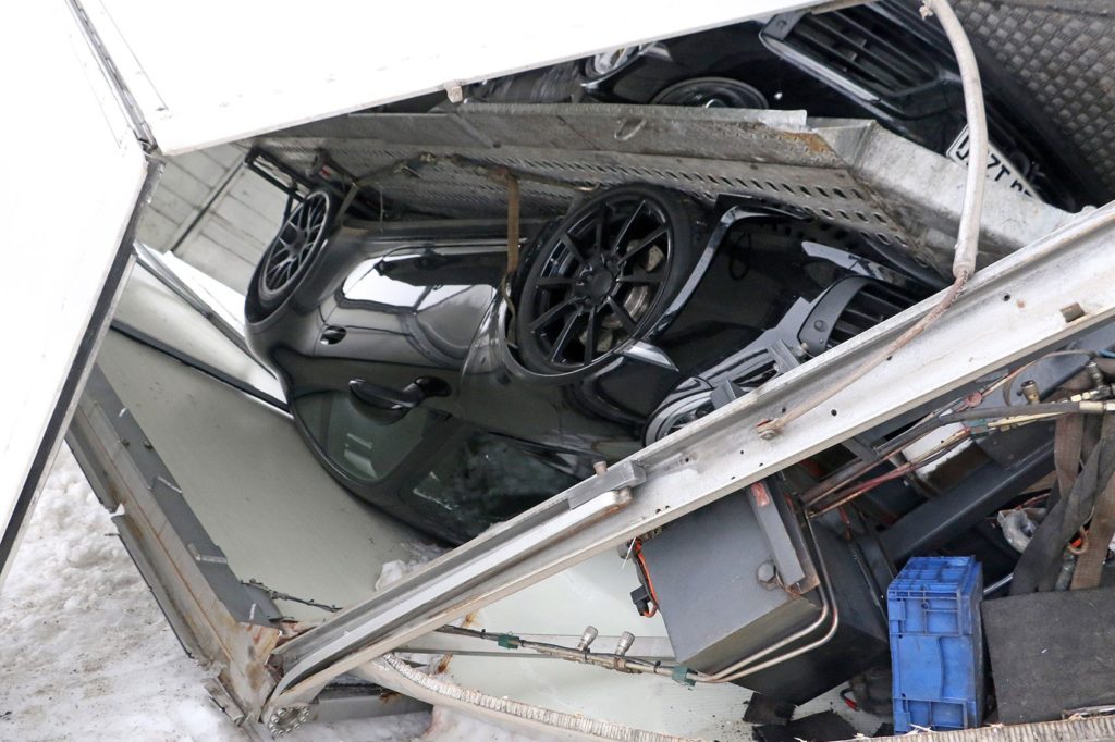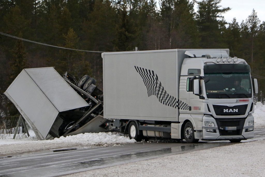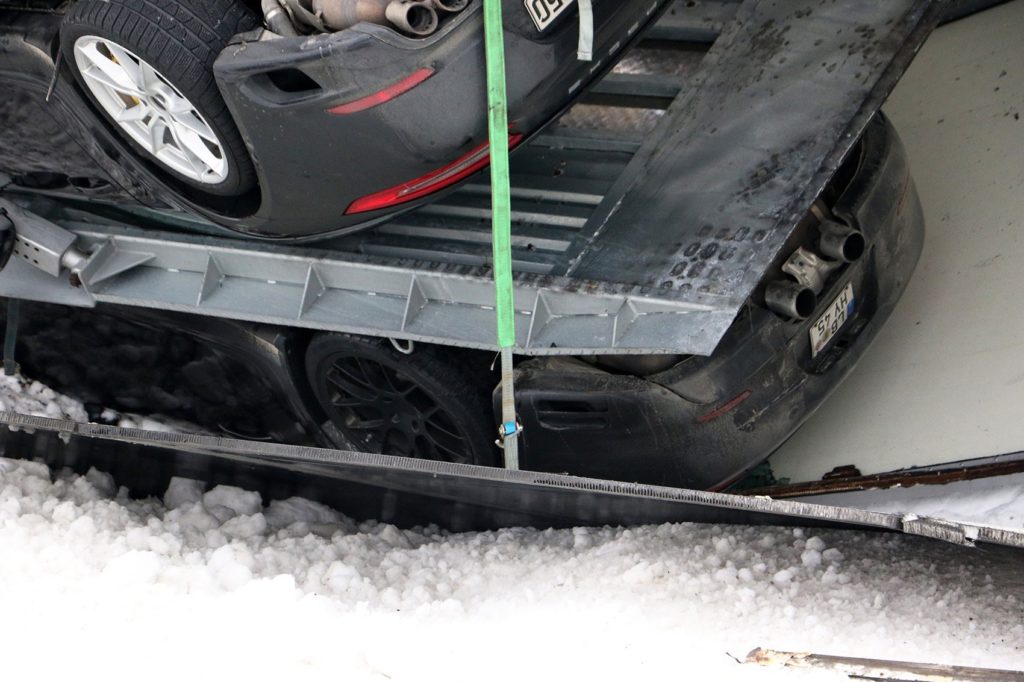 Porschéket szállító tréler borult fel Svédország északi részén, és néhány fotós máris ott termett, hogy megörökítse az esetet. A teherautón ugyanis a 911 következő generációjának két prototípusa utazott, és a kémfotósok éppen ezeket lefülelni utaztak a sarkkör közelébe. Persze arra nyilván egyikük sem számított, hogy ilyen állapotban kapja majd lencsevégre a Porschéket. Az erős szél megdobhatta a teherautó vontatmányát, így borult fel a 992 névre hallgató következő generációs 911 két példányával együtt.