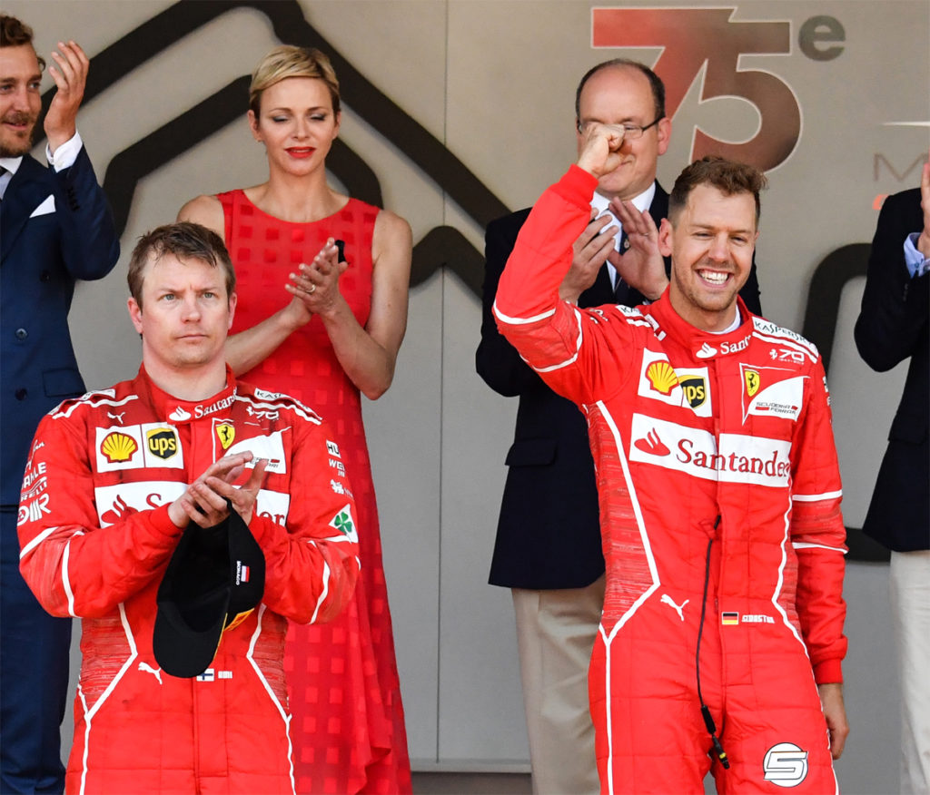 Kimi Räikkönen pole pozícióból indult a Monacói Nagydíjon, sőt, a futam feléig vezetett is, aztán a mögötte autózó csapattársának, Sebastian Vettelnek "jött ki jobban" kerékcseréje, így bár kettős Ferrari-győzelem született, a finn "csak" második lett. Csalódott volt? Hát...