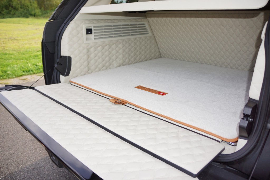 A kétszínű fényezés miatt még hosszabbnak tűnik a hosszított tengelytávú Range Rover Autobiography, szebb viszont nem lett. A beltérhez képest viszont jól néz ki – hiába a nemes anyagok használata, az első üléssort a hátsótól elválasztott fal és függöny, a beltér tipikusan mansorys: drága, de ízléstelen.