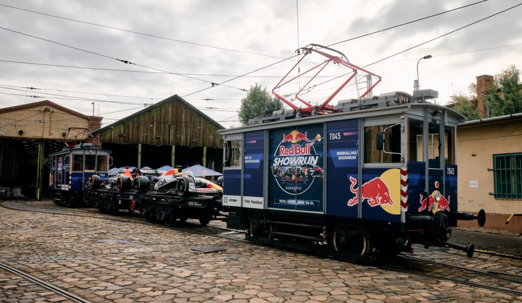 Szeptember 20–21-én rendezik Budapesten a Red Bull Showrunt, ami igazi motorsportünnepnek ígérkezik. Ezt promózza az a különleges szerelvény, ami két Red Bull-festésű Mukiból – ezek idén 99 éves tehervillamosok –, és közöttük egy pőrekocsin két F1-es versenyautó, a Red Bull Racing RB7-ese és a Visa Cash App Racing Bulls 2025-ös festésével ellátott RB7-ese.