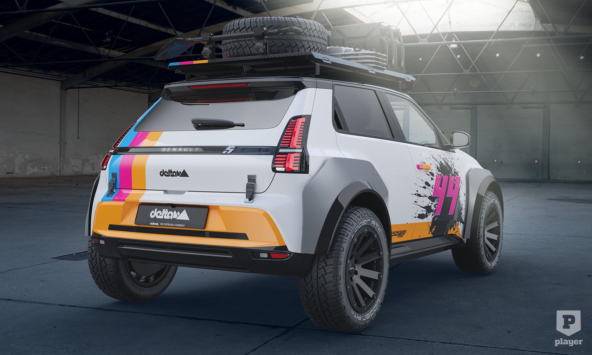 Mindezt látványos, retró színű festéssel és hangsúlyosan szélesített kerékjáratokkal tették teljessé a Deltánál. Mennyibe kerül mindez? Ha jól megnézed a képeket, ez a Renault 5 még csak a virtuális világban létezik, de azt mondják a Deltánál, hogy amennyiben elegendő megrendelést kapnak, 15-20 ezer euróért a valóságban is megépítik az offroad-R5-öst.
