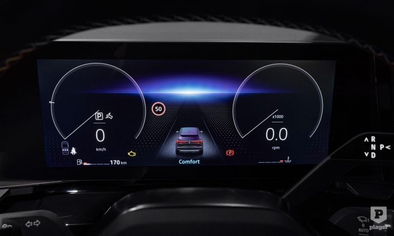 A jobban felszerelt változatban a műszeregység és a középső érintőképernyő is 12 colos, az utóbbin a Google rendszere fut, de azért megmaradtak a külön kapcsolók a klímához. Az automata változat választókarja itt is a kormányoszlopra került.