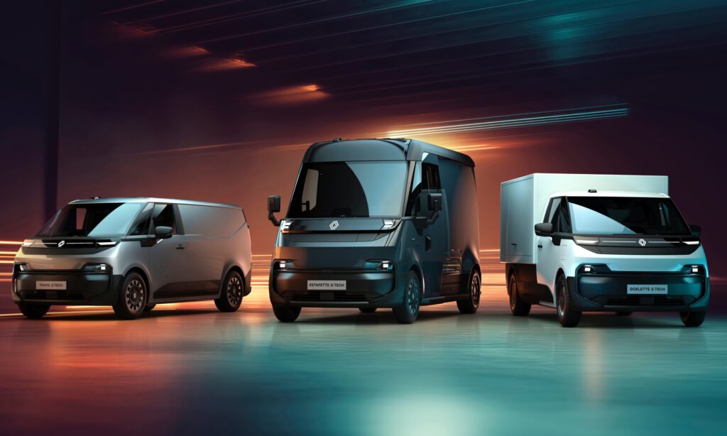 Látványosan összecsengő stíluselemei vannak az Estafette, a Goelette és a Trafic elektromos furgonoknak.