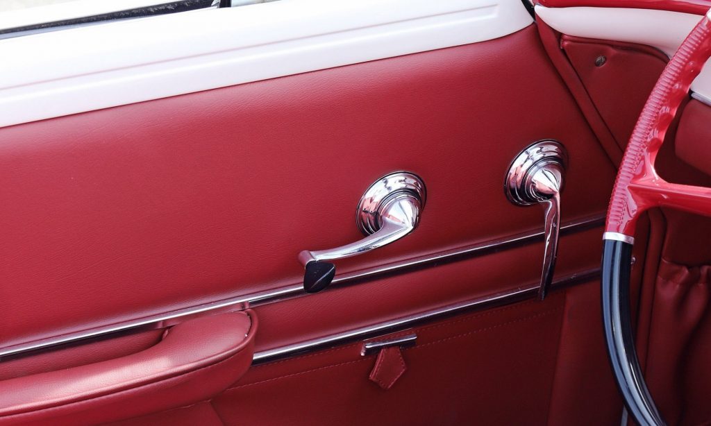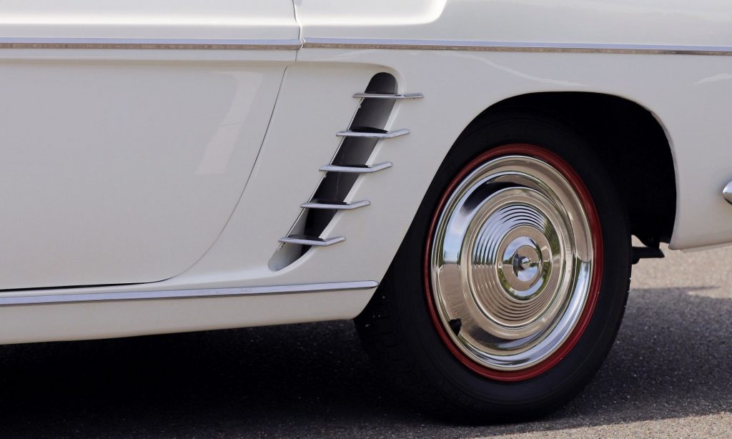 Fehér karosszériája ragyogott a tengerparti napsütésben, a piros műbőr utastér pedig csak fokozza a feltűnést.