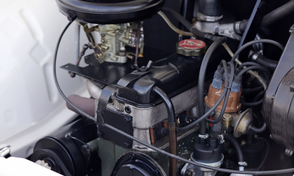 Hátsó kerekei előtt légbeömlő juttatja a hűtőlevegőt az autó hátuljában lévő motorhoz, mely kezdetben egy 845 köbcentis, négyhengeres volt, szerény 37 lóerővel. A kései autókba már az R8-as 1,1 literes blokkja került és tárcsafékek lassították az 55 lóerős kabriót. Ez a Renault Classic gyűjteményéből származó Floride egy korai darab, az utastérhez passzoló piros vászontetővel és szintén piros keménytetővel.