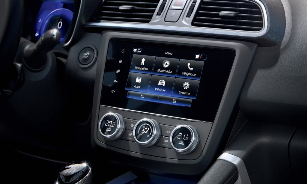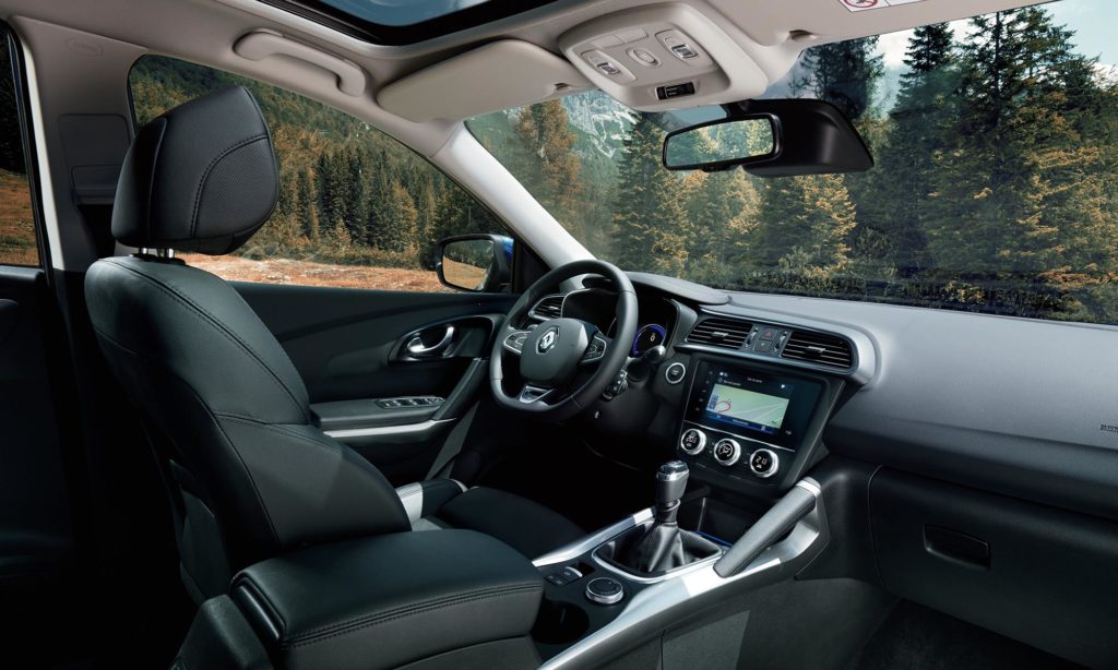 Belül látszik igazán, hogy megújult a Kadjar, ugyanis a korábbi süllyesztett kijelző helyét egy fényes borítású 7 colos érintőképernyő vette át a középkonzolon. Szebb és jobb minőségűnek is tűnik a klímaberendezés kezelőpanelje, de a felhasznált anyagokon, az üléseken, a kilincseken és az ajtókárpitokon is igazítottak a tervezők.