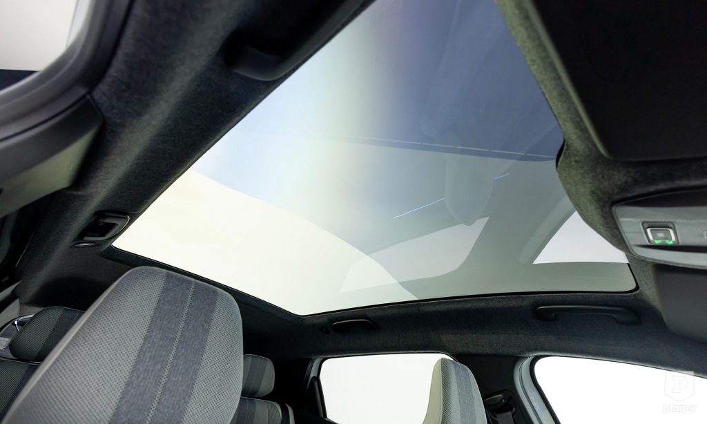 Ebben nagy szerepe van a finom részletekből felépített beltérnek, és annak, hogy a teljes utasteret betöltő üvegtető világossá tesz minden szegletet. Mondanom sem kell, hogy az üvegtető is újrahasznosított üvegből készül, és teljes egészében újra is hasznosítható. Valamint jól szigetel télen és nyáron is, és valamilyen elektromos-kémiai módon sötétíthető hét szegmensben. Ez bonyolultabbnak tűnik, mint egy mechanikus napfényroló, de 6-8 kilóval könnyebb, és kevesebb helyet vesz el a fejtérből.