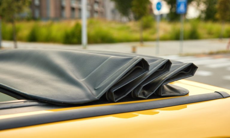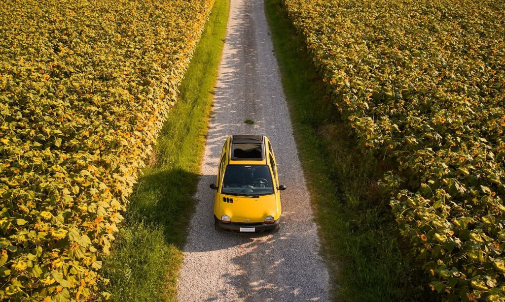 Végtelenül aranyos ez a sárga Renault Twingo, mely nyitható vászontetővel garantálja a vidám autózást.