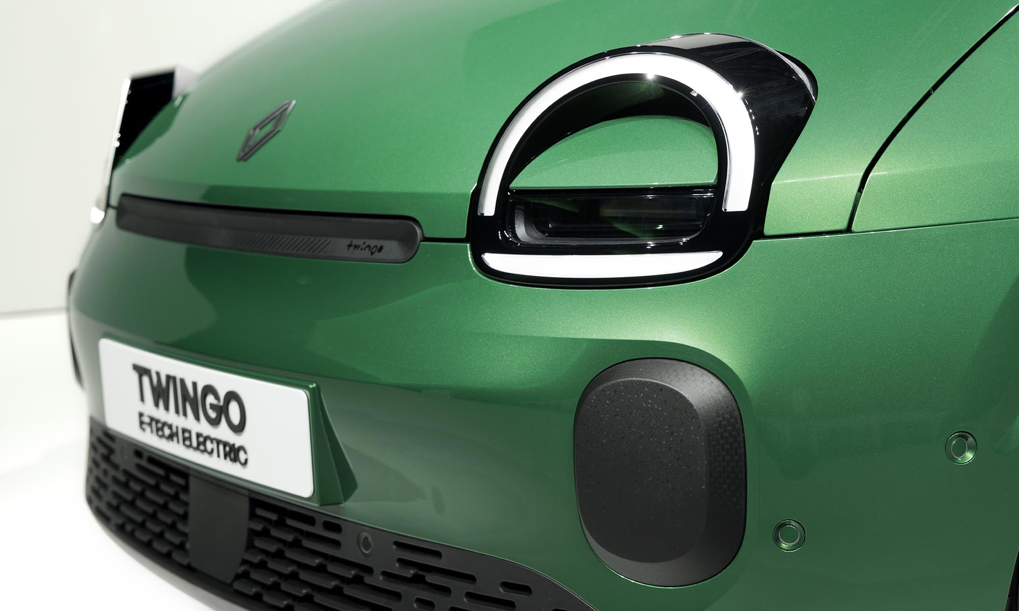 Nem kell szakértőnek lenni ahhoz, hogy felismerd, ez az 1992-es eredeti Twingo modern megfelelője. Sikerült újra megalkotni az imádnivaló formát, a gépháztetőből kidülledő kerek fényszórókkal. Persze ez már nem halogén izzós, a lámpák a félkör alakú LED-csíkból és alatta a vízszintes sávból állnak, ami egyszerre menetfény és irányjelző, pont ott, ahol az eredetin is volt. Még a szűk hűtőmaszkot is megidézték egy fekete betéttel.