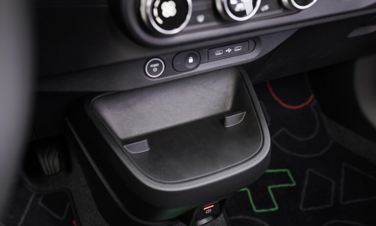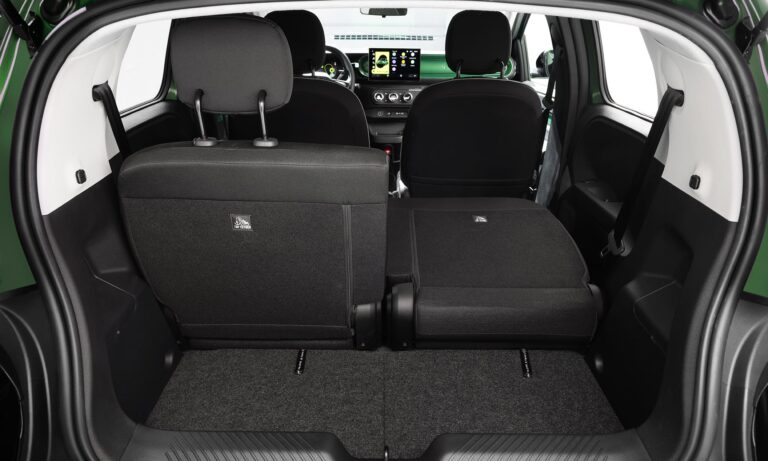 Hátul például külön tologatható az ülés két fele egy 17 centiméteres sínen, ezért választhatunk nagy lábtér vagy nagy csomagtartó között. Ha az üléseket előretolod, akkor 360 literes teret kapsz – többet, mint a 326 literes csomagtér a Renault 5-ben –, és az üléseket hátratolva is marad 260 liter.