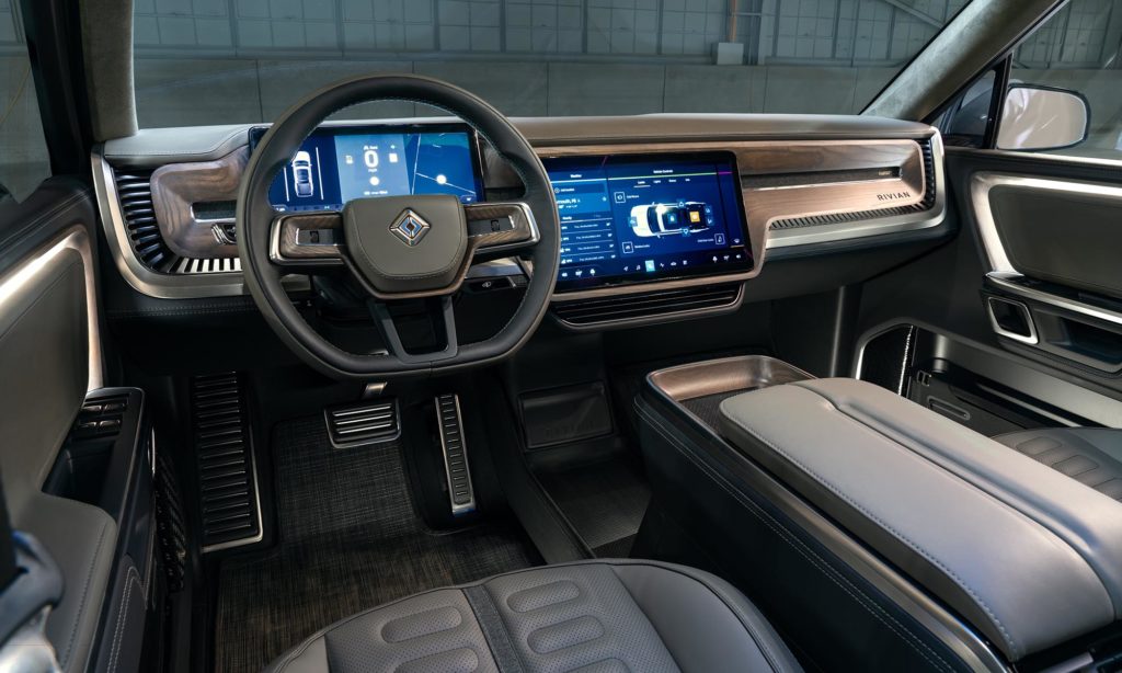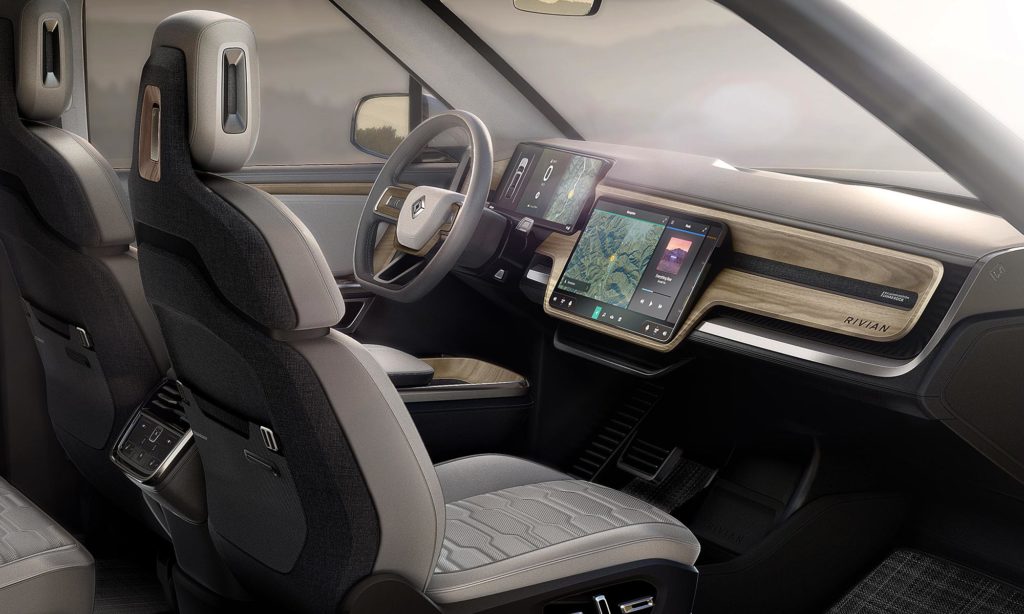 a csomagtérben 110 voltos elektromos aljzatot és sűrített levegőhöz csatlakozást alakítottak ki. A Rivian elektromos autóhoz illő módon high-tech utasteret teremtett, az adatokat a kormánykerék mögötti 12,3 colos és a középső 15,6 colos képernyőn lehet figyelemmel követni, és a Rivian már 3-as szintű önvezetésre is képes lesz.