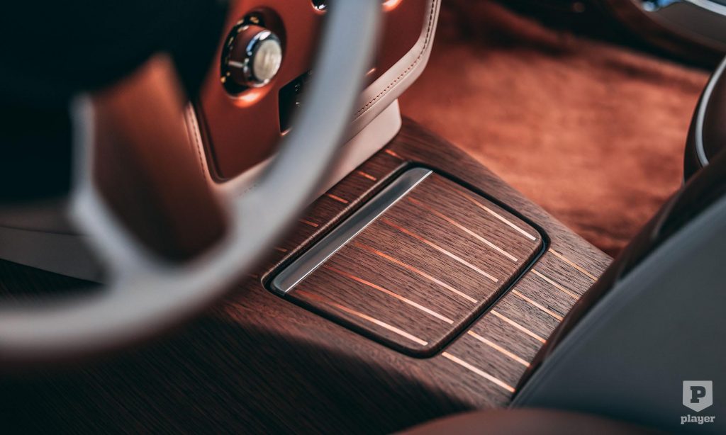 A belső térben is a karosszéria színvilága köszön vissza, konyakbarna és osztrigaszínű bőrökkel, diófa betétekkel és rozéarany szegényekkel.