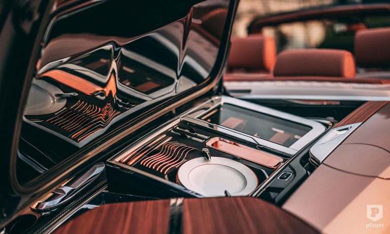 de a legapróbb részletig a megrendelő kívánsága szerint alakították ki. Az új Boat Tail vásárlója apjától örökölte a családi vállalkozást, amely a gyöngyiparban tevékenykedik, ezért a Rolls-Royce fényezését és berendezését is a gyöngyházak ihlették.