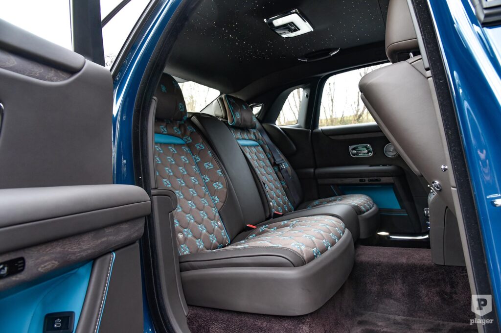 Mégis van egy pár részlet, ami elárulja, hogy a legújabb Ghostot látod magad előtt. A fényszórói kevésbé szögletesek, amivel barátságosabb lett az arca, az átlátszó burájú hátsó lámpák pedig a Spectre mintájára hosszanti betéteket kaptak. A hűtőmaszkja már eddig is megvilágítható volt, de éppen csak annyira dereng sejtelmesen, hogy a fénye éjszaka se legyen tolakodó. A karibi szigetről elnevezett, az óceán kékjét idéző Mustique fényezése a 22 colos, polírozott kerekekkel tökéletesen ízléses kombináció – elég fiatalos, de nem túl tolakodó.