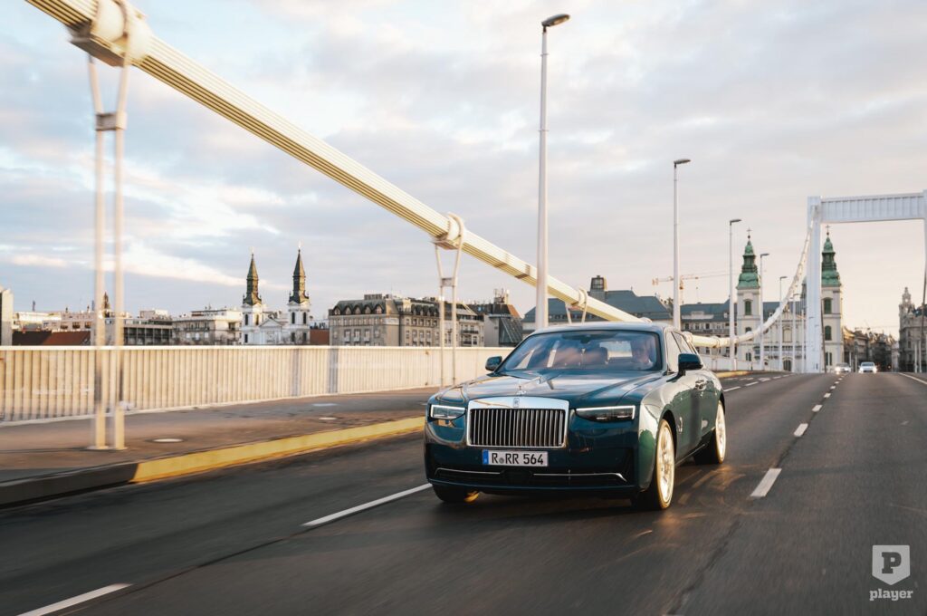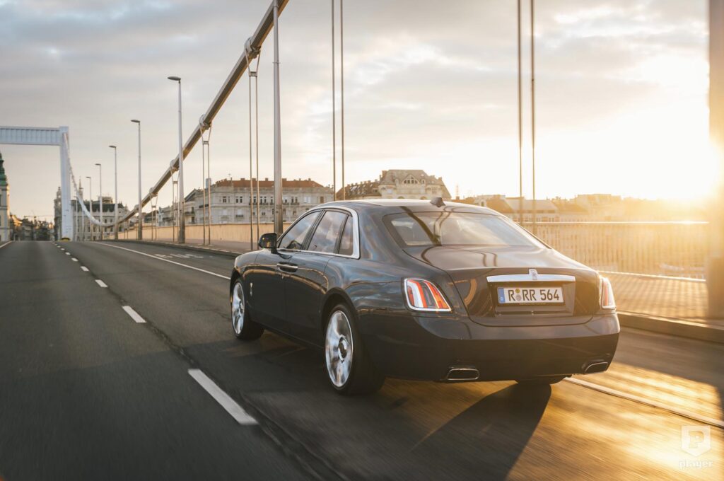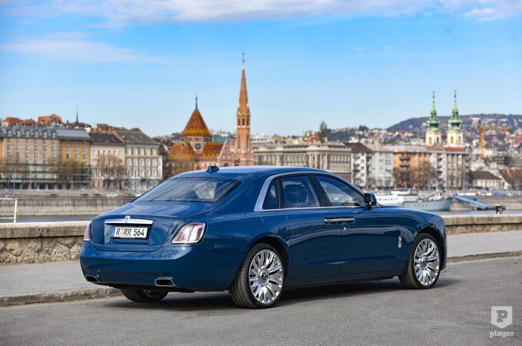 Hátrafelé nyíló hátsó ajtóin egyszerűbb a beszállás, és ahogyan számítottunk rá, még a rövidebb Ghostban is bőséges a térkínálat. A tesztelt modell még nem a csúcs, mert itt szükség esetén egy harmadik utasnak is helyet lehet adni, de a két szélső fotel támlája dönthető, középen pedig a kartámasz mögött pezsgőhűtő van, ami jó sommelier módjára az ital típusához igazítja a hőmérsékletét. Az igazi luxus mégsem ez, hanem az a nyugalom, amivel a kisebbik Rolls-Royce pihentet, miközben a sofőr vezet, te pedig a gyapjúszőnyegbe süllyeszted a lábad.
