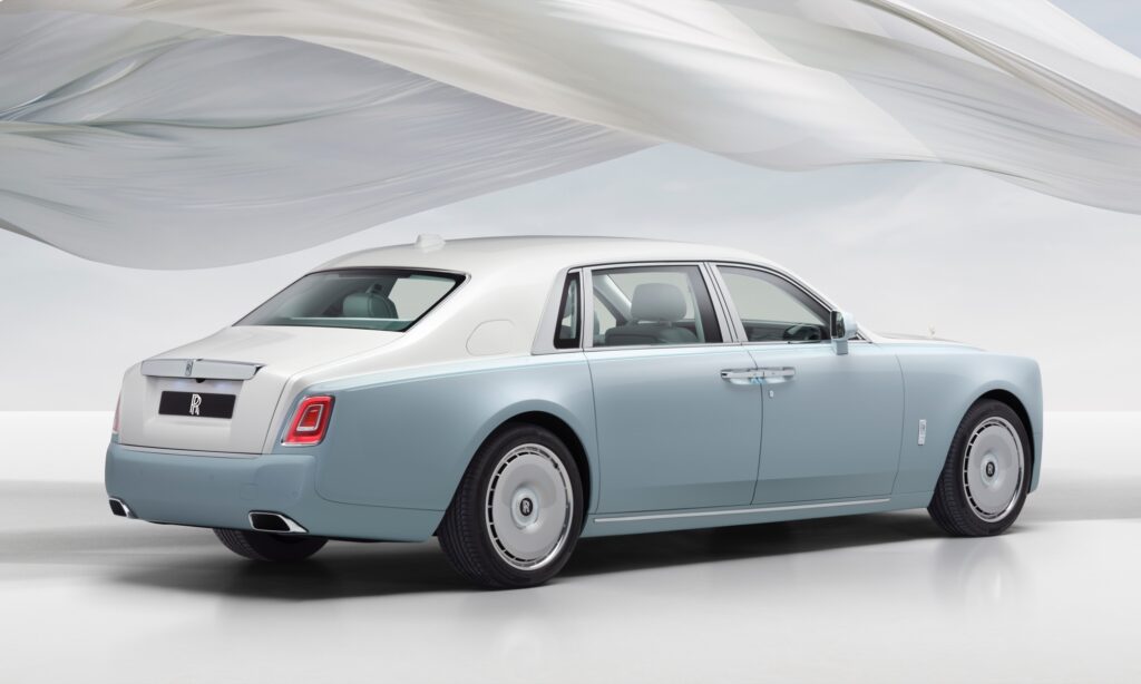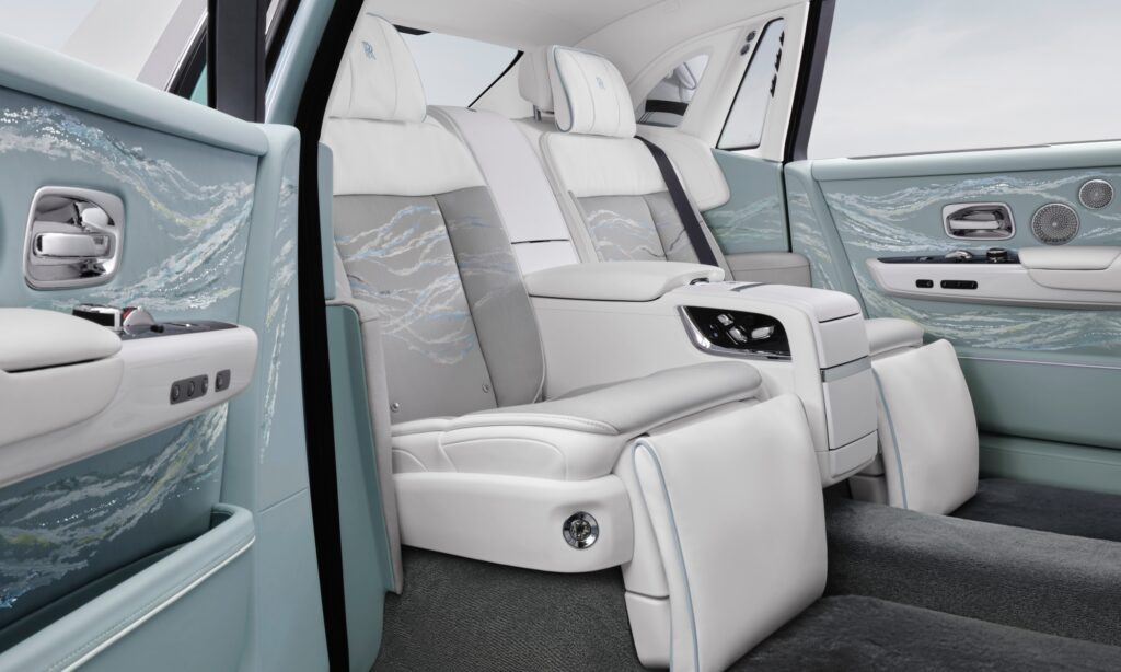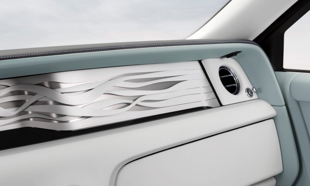Mintha a szellő fodrozta volna azt a mintát, mely körbeöleli a közel 3,8 méteres tengelytávú Phantom utasait. A kék, fehér és szürke bőrrel kárpitozott utastér díszítéséhez Brienny Dudley kézműves mester a tatami öltést választotta, melyet több rétegben és különböző sűrűséggel alkalmaztak. A teljes belső kompozíció 869 500 öltésből áll, a kivitelezése pedig nagyjából negyven munkaórát vesz igénybe.