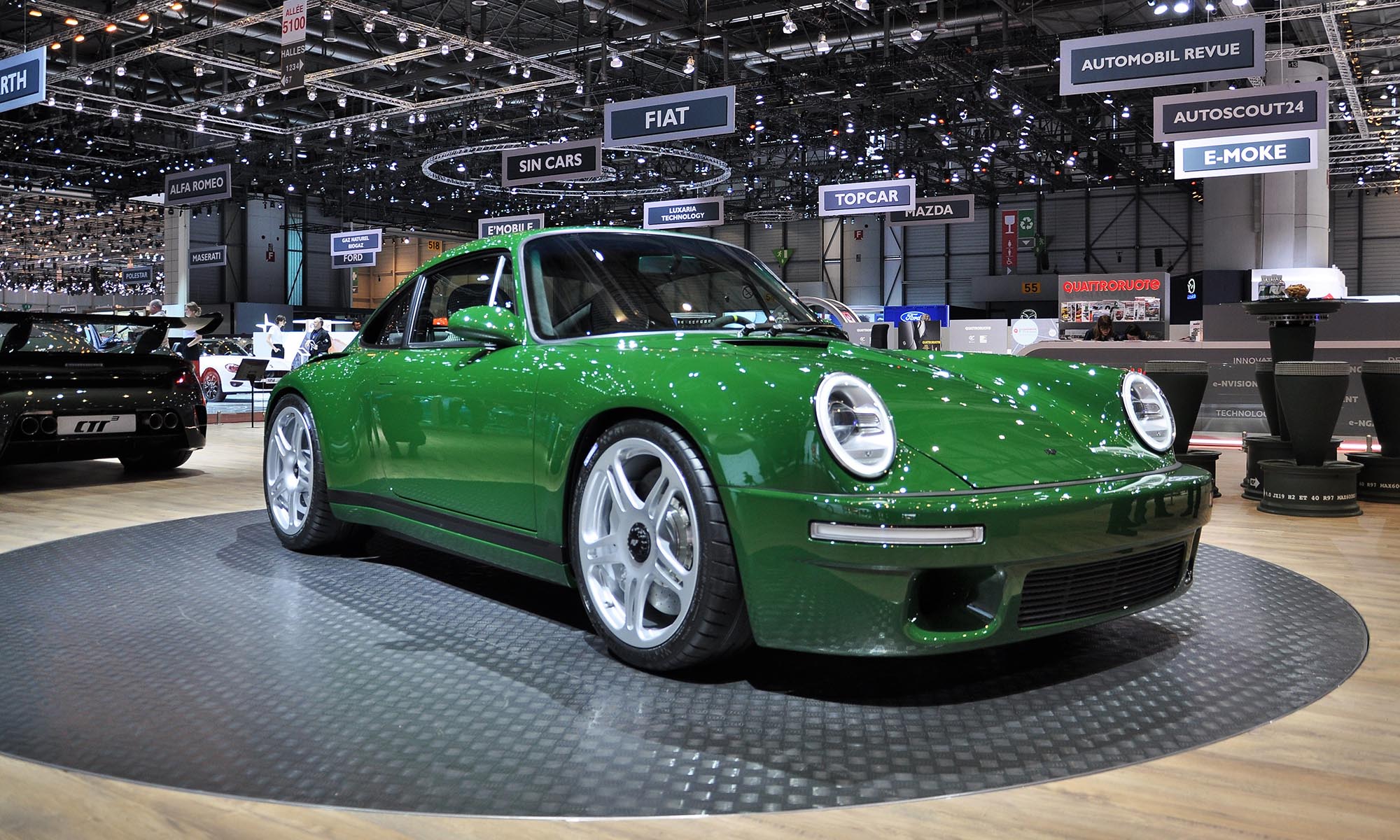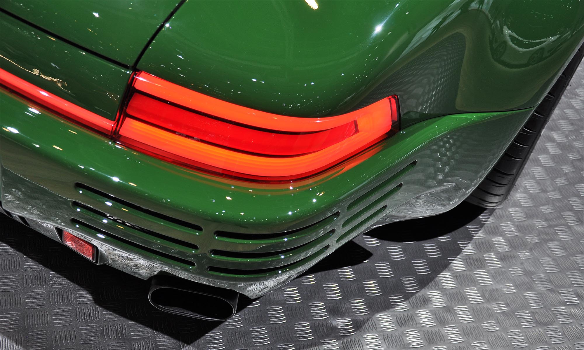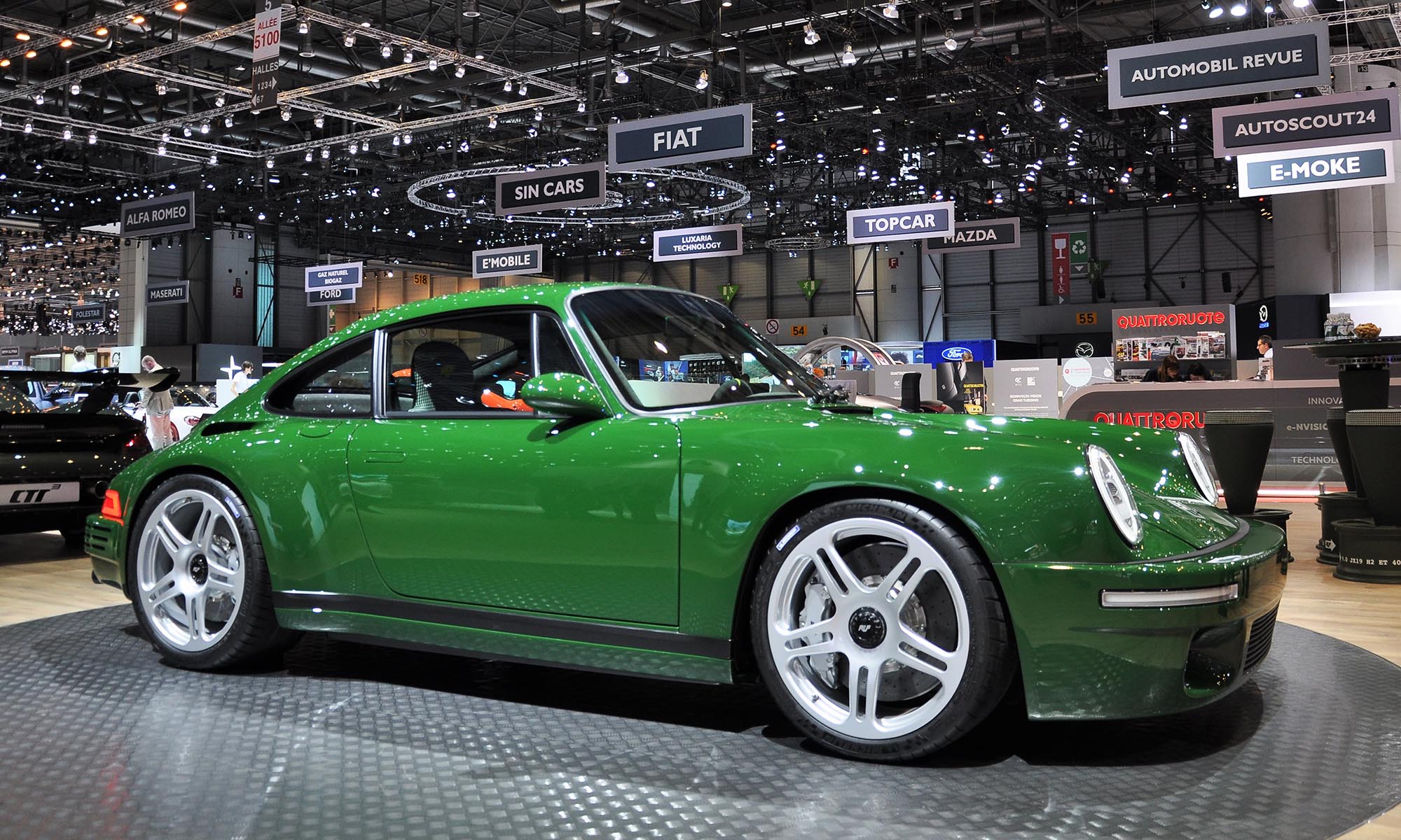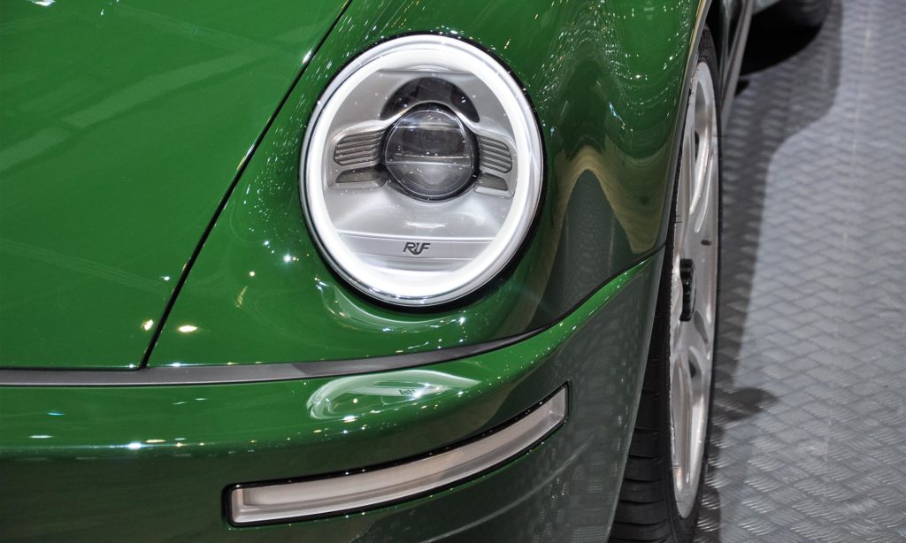 A Ruf standján forgó zöld színű 911-es csak látszólag ugyanolyan, mint a tavalyi sárga fenevad, és igazából csak látszólag Porsche. Nem egy klasszikus modellt építettek át, hanem az alapoktól kezdték egy csővázas szerkezettel, és erre húzták rá a legendás 911-est idéző, retró stílusú, szénszálas anyagból készült karosszériát. A receptet pedig idén ismét elővették, de mást főztek belőle.