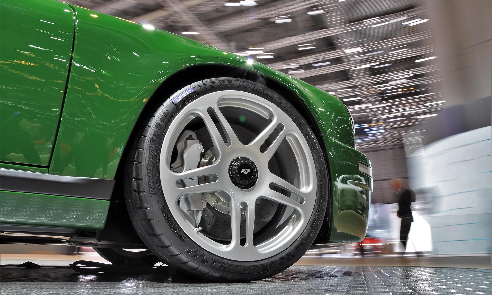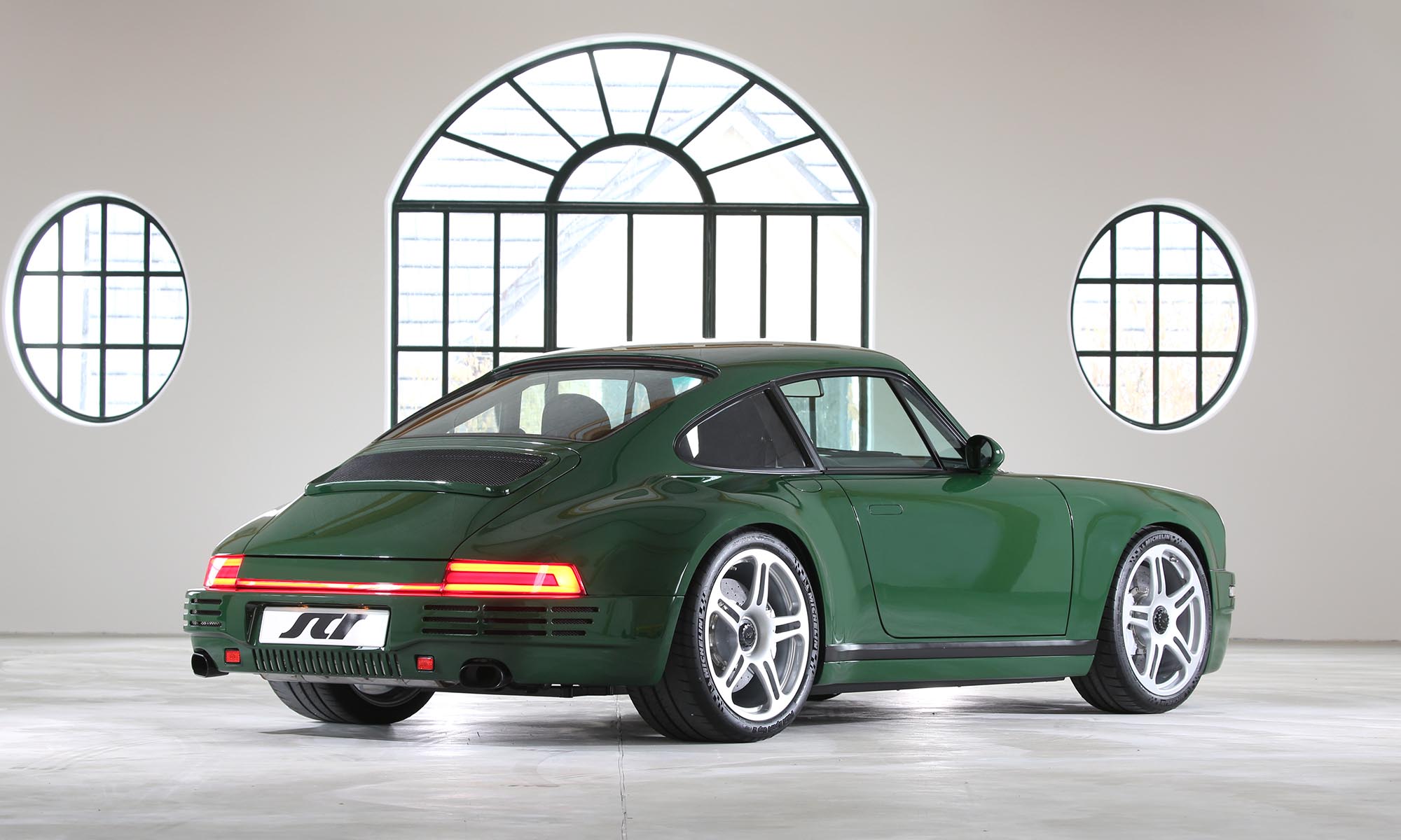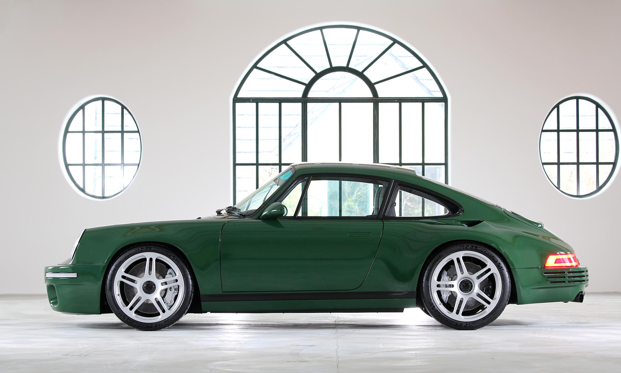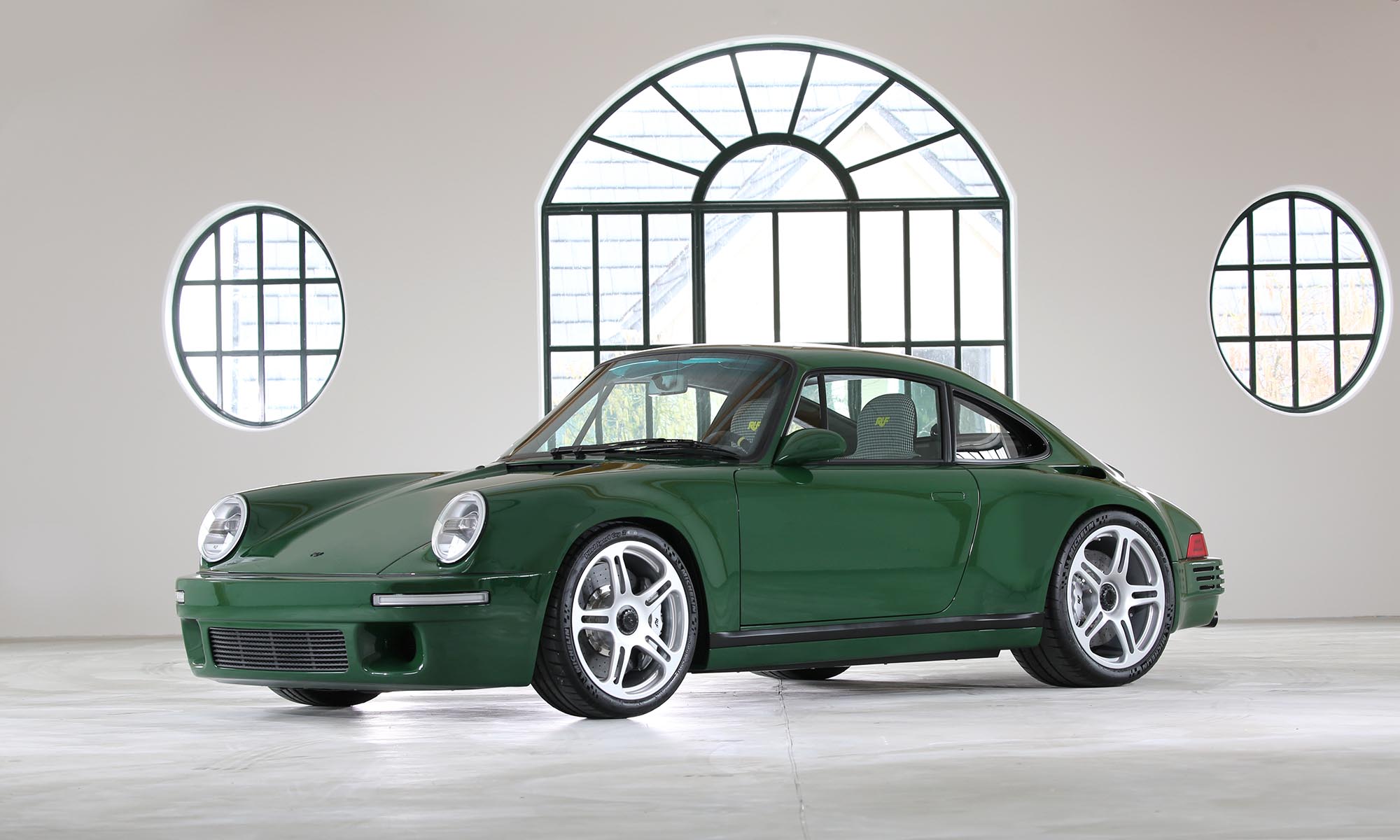 A Ruf standján forgó zöld színű 911-es csak látszólag ugyanolyan, mint a tavalyi sárga fenevad, és igazából csak látszólag Porsche. Nem egy klasszikus modellt építettek át, hanem az alapoktól kezdték egy csővázas szerkezettel, és erre húzták rá a legendás 911-est idéző, retró stílusú, szénszálas anyagból készült karosszériát. A receptet pedig idén ismét elővették, de mást főztek belőle.