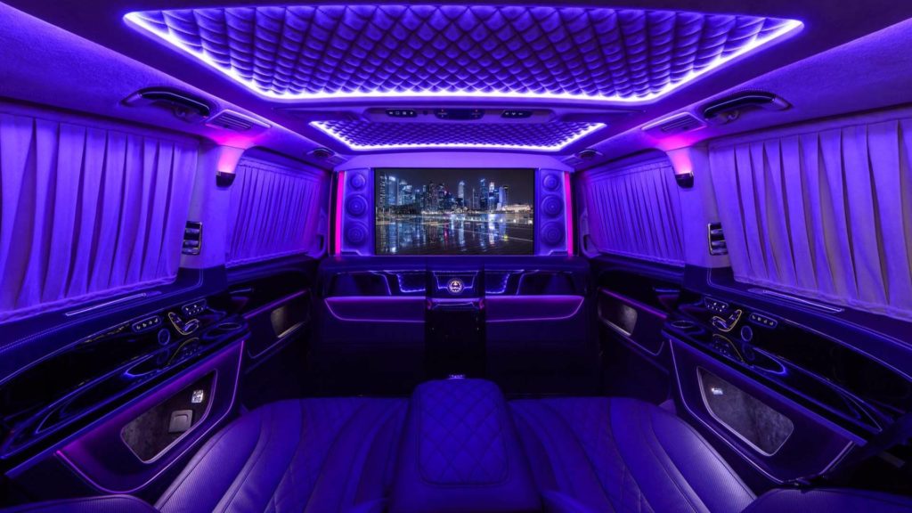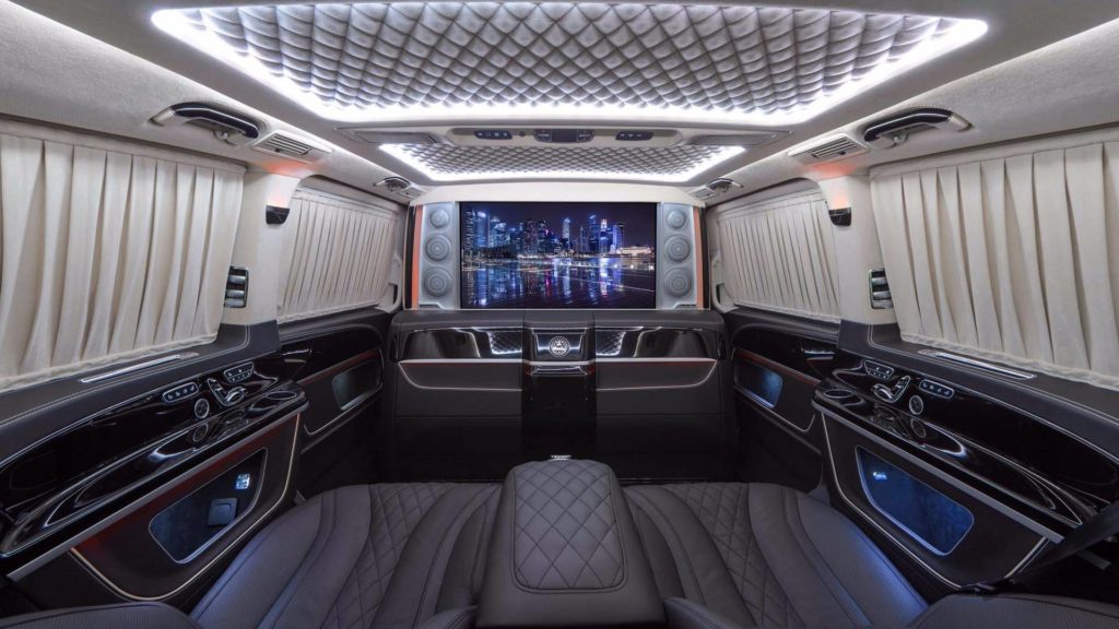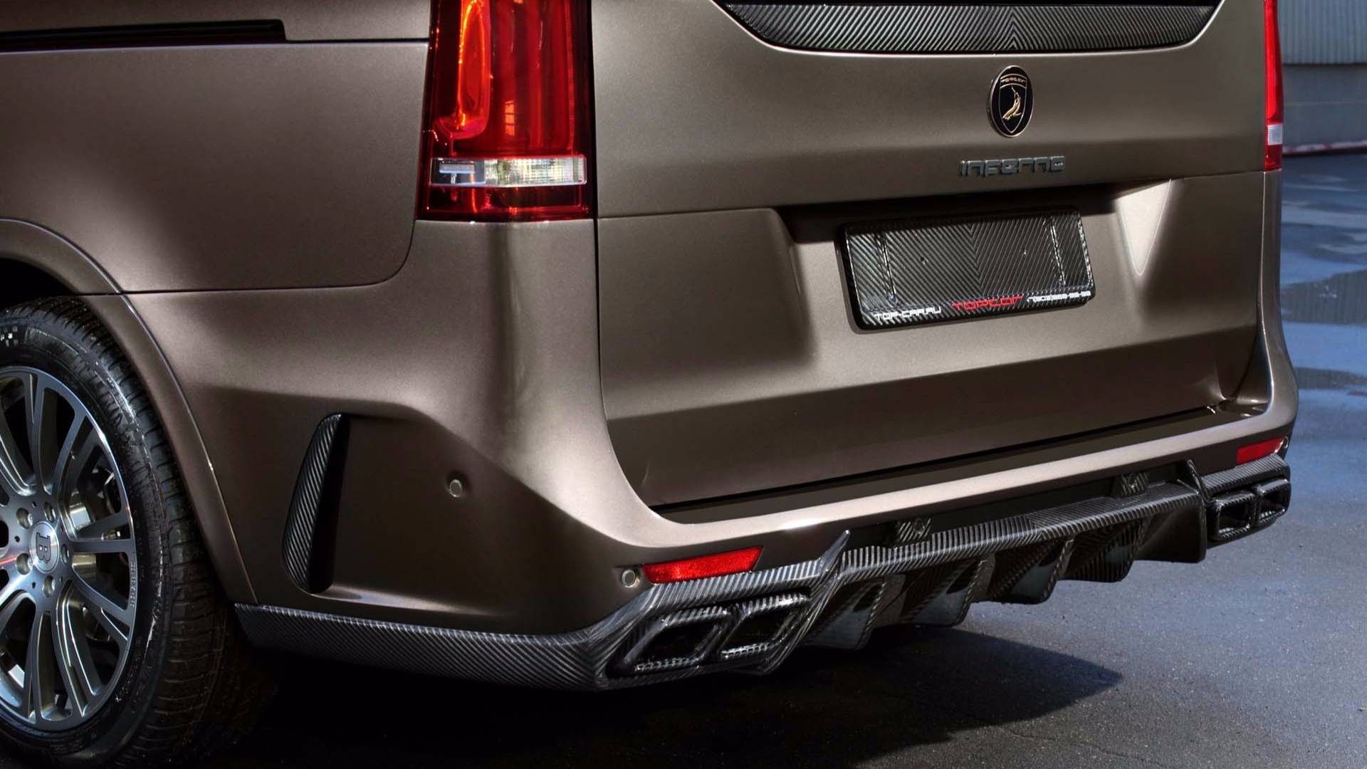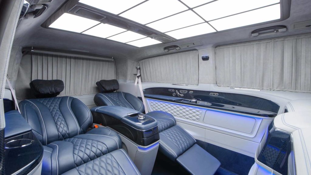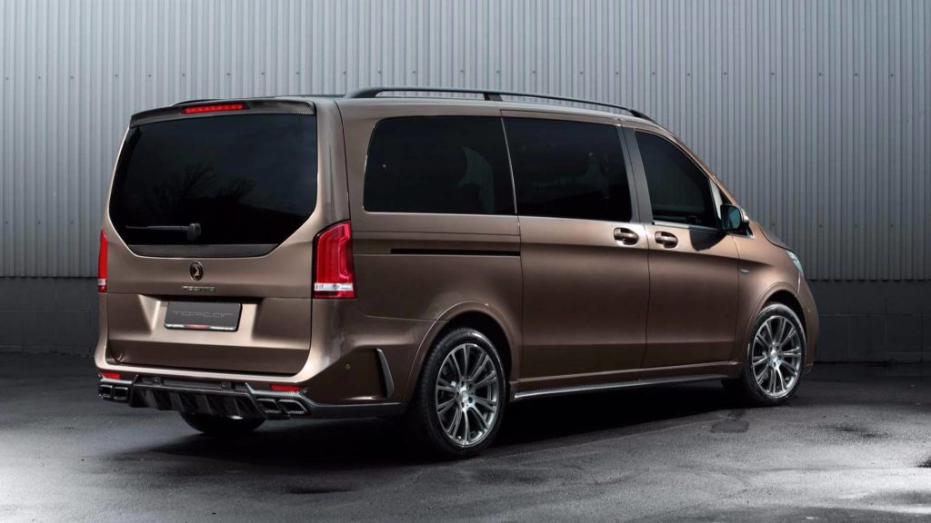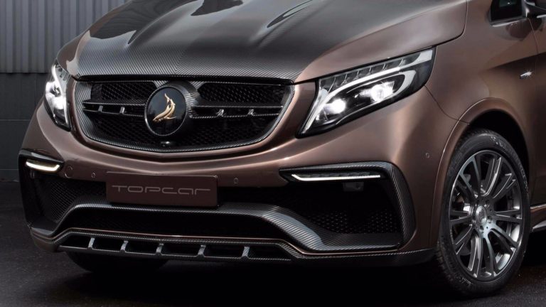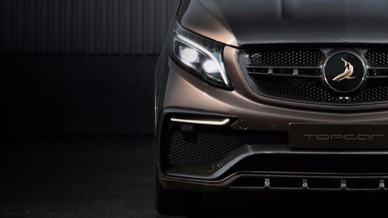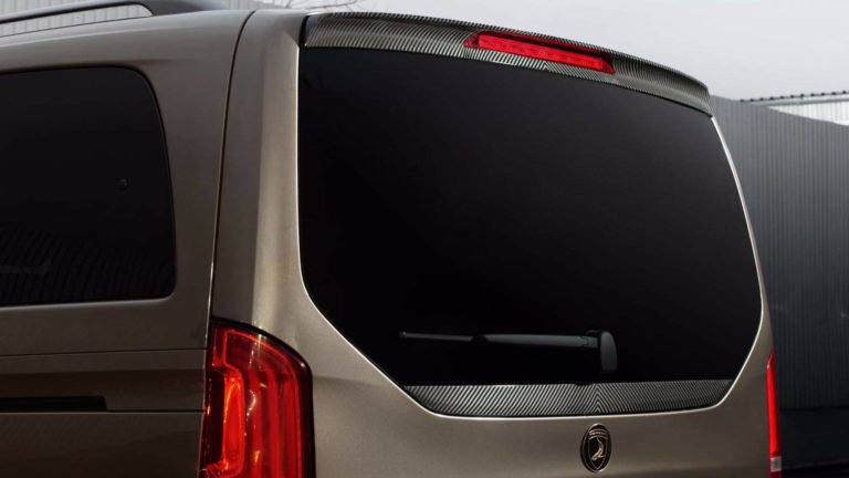Kívülről nézve is tudod, hogy ez nem a széria V-osztály, hiszen a Mercedes-Benz kisbuszára minden felkerült, amit egy tuningcég csak feltehet rá. A hűtőmaszk, a lökhárítók és a kerekek is egyediek, még a motorházfedélre is szénszálas anyagot mintázó burkolat került. A lakóautó-tesztünk óta tudjuk, hogy 200 km/órát simán megfutja a kétliteres dízel.