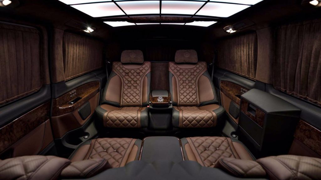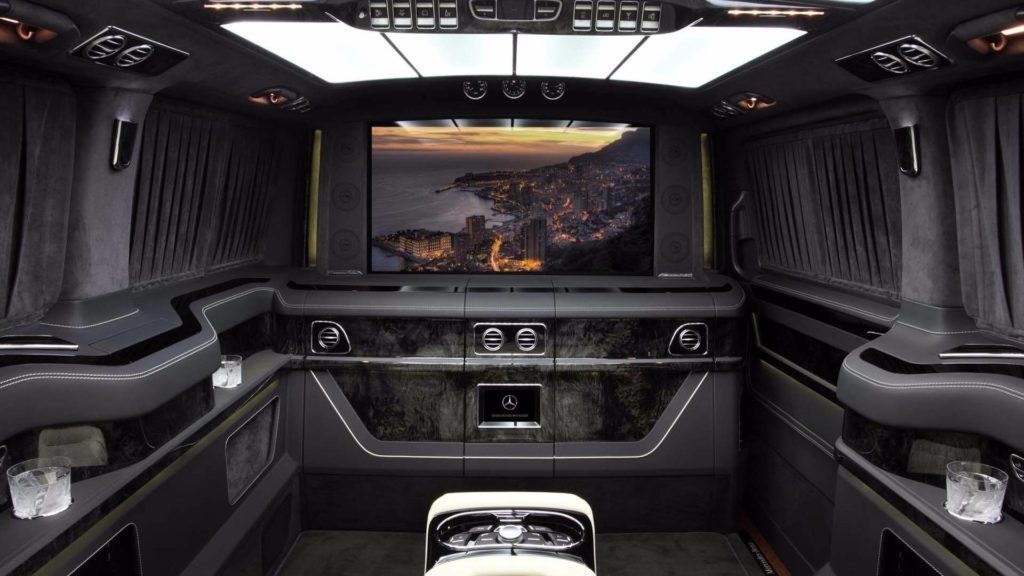 Mégis érdekesebb a belső tér, ami a TopCar korábbi munkáit látva hihetetlenül igényes. A nagy teret a lehető legjobban használták ki, négy kényelmes fotel került be, amiből kettő összecsukható, a másik kettőt pedig akár nyugággyá is lehet alakítani. Ha már így alakul, akkor kap szerepet a házimozi, amihez el lehet függönyözni és hangulatfénybe lehet borítani a belső teret.