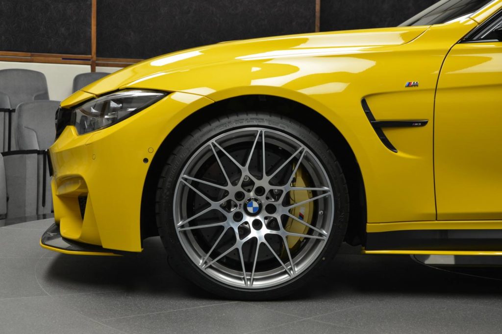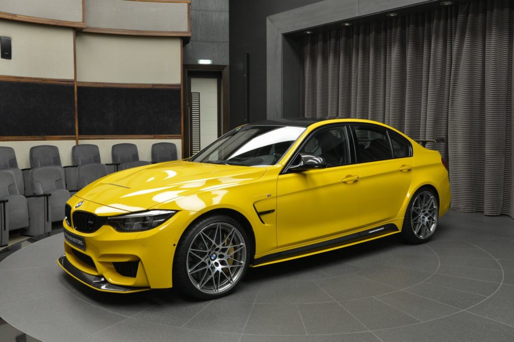 Pont olyan sárga, mint nálunk a taxik, mégsem fogja senki sem összekeverni a személyfuvarosokkal ezt a BMW M3-at, amit Speed Yellow színben rendeltek. A tökéletes összképhez az M Performance kiegészítők is hozzátartoznak.