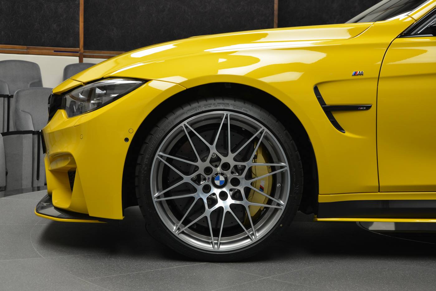 Sok élénk színben láttuk már a BMW M3-at, de ilyen taxisárgában eddig még nem, pedig az abu-dzabi márkakereskedésben pompázó példány eléggé jól mutat. Persze ehhez hozzájárul az is, hogy nem szériamodellről van szó, hiszen a motorházfedél és az első lökhárító a GTS-ről származik, és megrendelték hozzá a szénszálas anyagból készült M Performance hátsó szárnyat és diffúzort, meg a titánium kipufogóvéget.