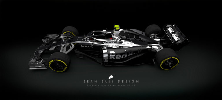 Sean Bull most a Toro Rosso és a Honda 2018-as szerelemgyerekét képzelte el. Az autó olyan fekete-króm fényezést kapott, aminél vadabbat egész egyszerűen nem tudunk már elképzelni: