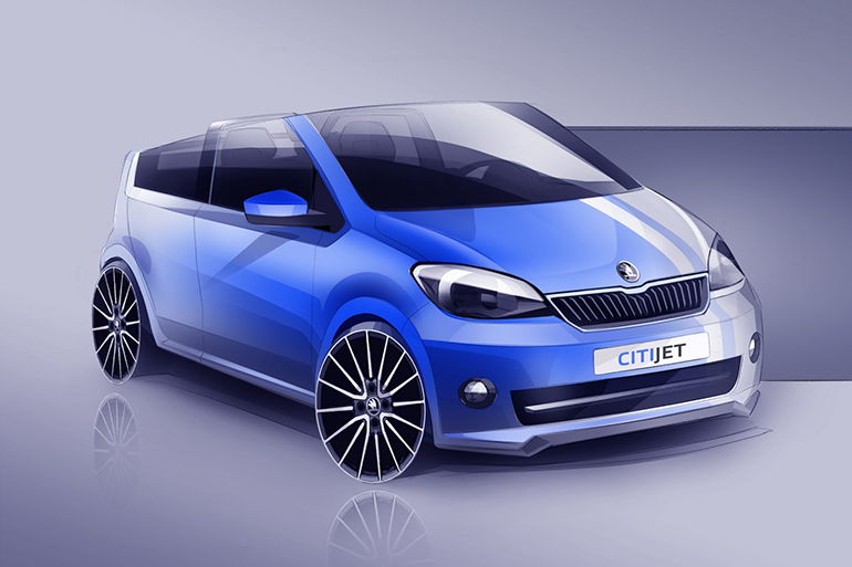 A Skoda Citigón alapuló kétüléses kabrió minden porcikájából fiatalosság árad, ami nem meglepő, hiszen a tanulmányért a Skodánál dolgozó gyakornokok a felelősek. Ők találták ki a merész formatervet, a látványos, kék-fehér festést, az egyedi hátsó szárnyat és a dupla kipufogót is, de a 300 wattos hangredszerhez kapcsolódó, a zene ütemére villogó LED-es fények is az ő ízlésüket tükrözik.