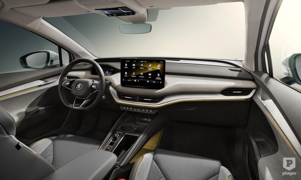 A fenntarthatóság jegyében az utastérben újrahasznosított PET-palackokból, gyapjúból és/vagy környezetbarát módon cserzett bőrökből készült kárpitokkal találkozhatunk. Talán kevésbé szolgálja a fenntarthatóságot, hogy az Enyaq Coupé felnije minimum 19 colos, de akár 21 colos felnik is kérhetők a kocsihoz. Ha már colok: már az alapkivitelben is 13 colos képátlójú központi kijelzőt és 5,3 colos műszeregységet találunk, de akinek ez nem elég, kiterjesztett valóság-funkciókkal feldobott head-up displayt is rendelhet az új Škodába.
