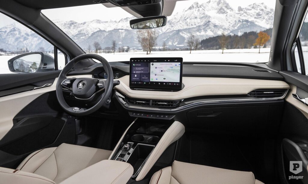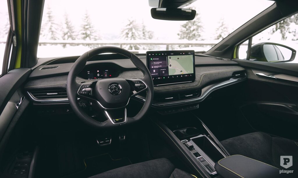 A gyorsabb töltés télen is könnyebben kihasználható lett, az Enyaq ugyanis már támogatja az akkumulátor előkondicionálását, ami azt jelenti, hogy hidegben is felkészíti az akkucsomagot a nagyteljesítményű villámtöltésre, és kevesebb időt kell a töltőnél vesztegetnünk. A Škoda az érintőképernyős rendszert is tovább tökéletesítette, bár infotainmentben eddig is az Enyaq volt a legjobb a testvérmodelljei közt, a klímának mindig is volt saját kezelősávja a kijelző alján.