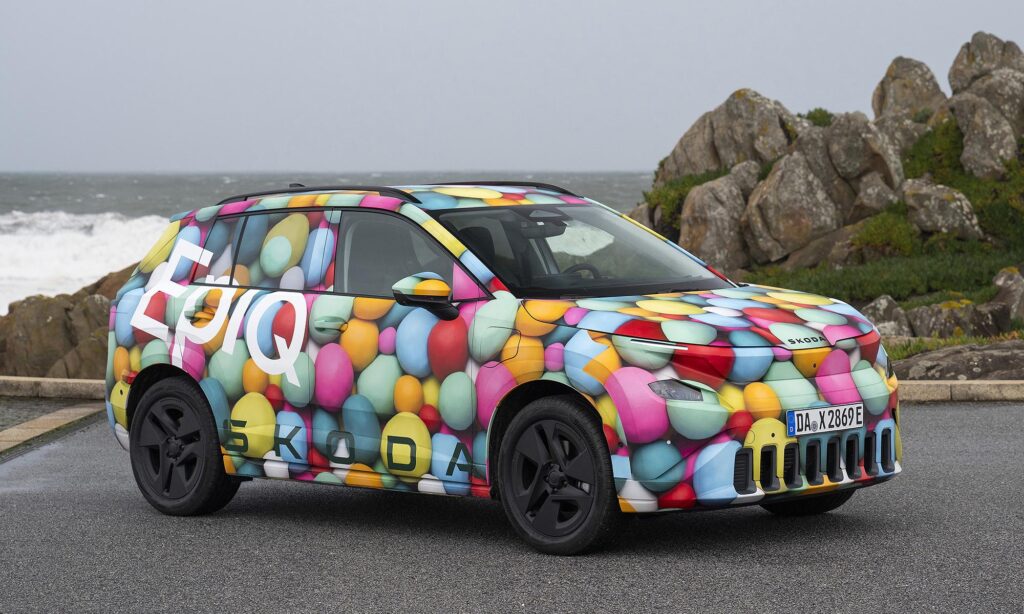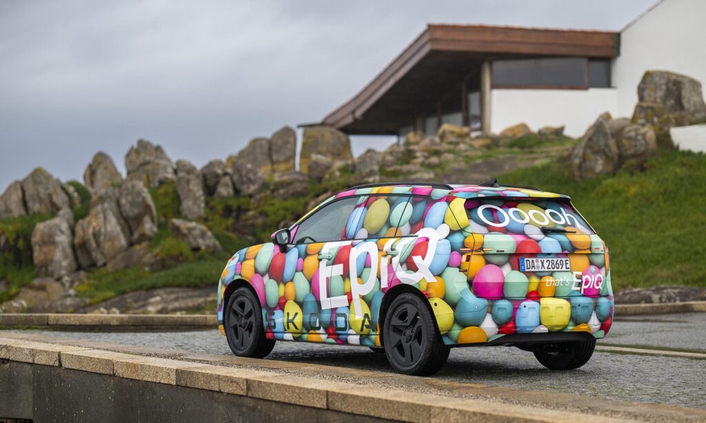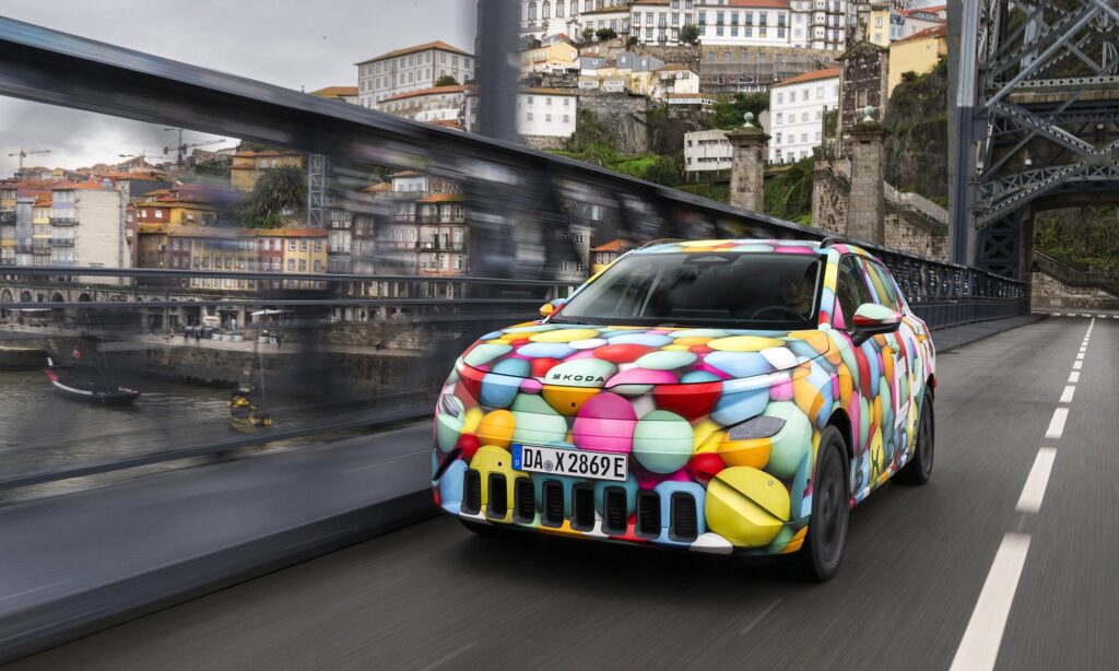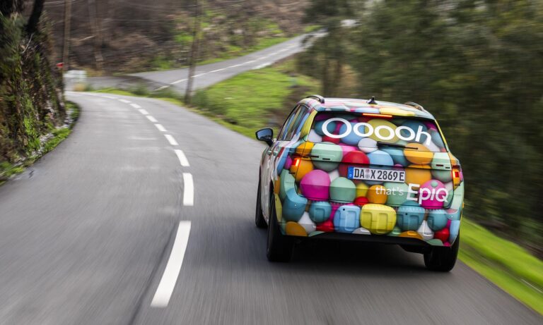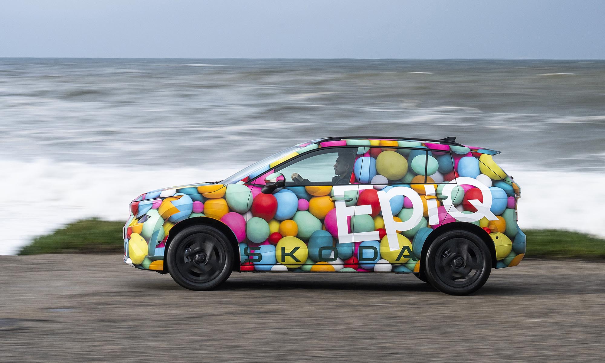 Még jóval a bemutatója előtt Porto környékén vezethettük is egy kicsit a Škoda Epiq prototípusát, amit ebből az alkalomból jópofa lufis álcával takartak el. A próba rövid volt, de az már itt kiderült, hogy könnyen vezethető, kellemes hétköznapi autó lesz az Epiq. Jól manőverezhető, a kormányoszlopon lévő karral pedig válthatunk a regeneratív fékezés adaptív és fokozott módja között, az utóbbi szinte egypedálos vezetést ad.