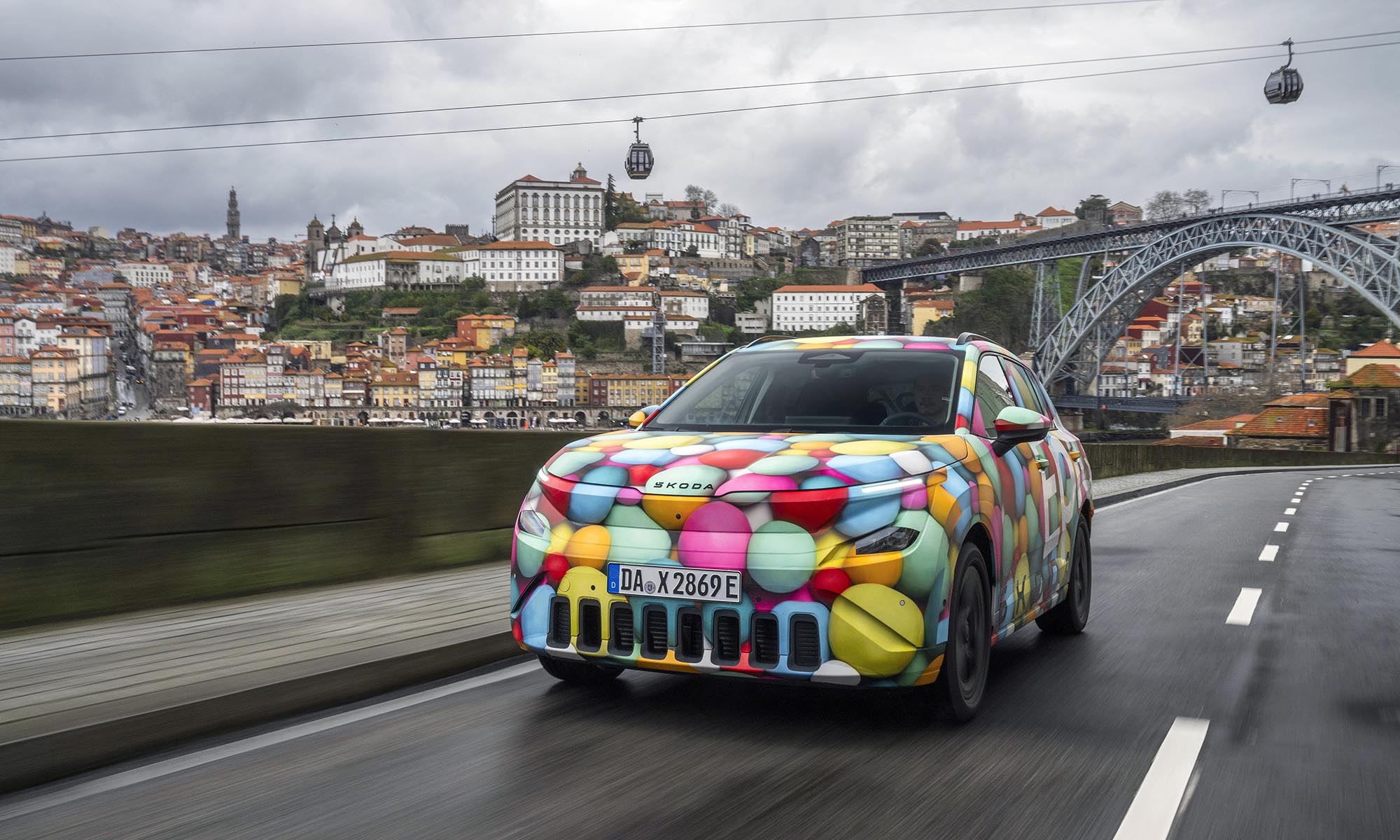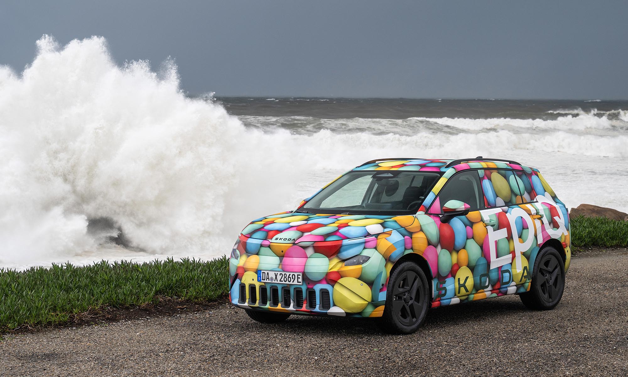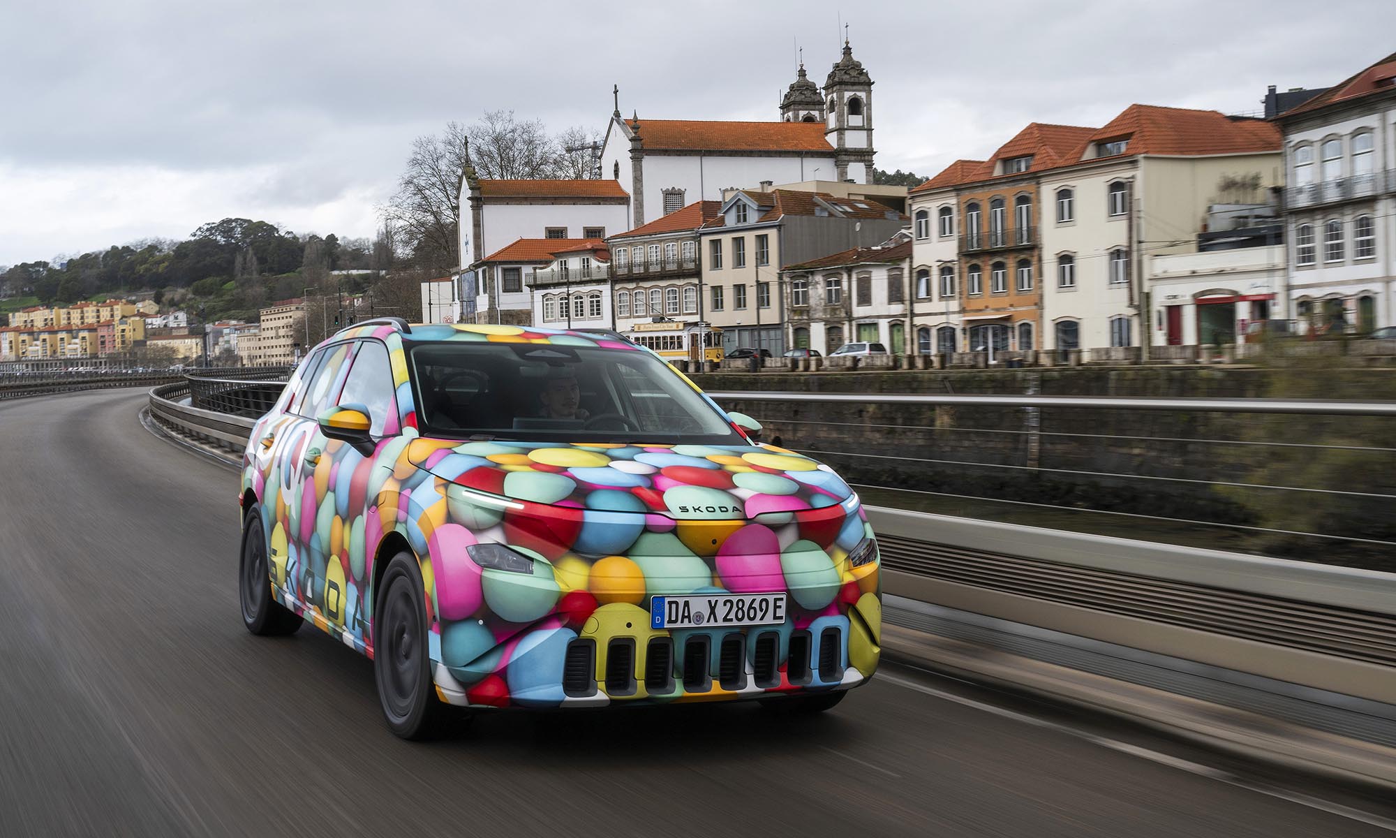 Még jóval a bemutatója előtt Porto környékén vezethettük is egy kicsit a Škoda Epiq prototípusát, amit ebből az alkalomból jópofa lufis álcával takartak el. A próba rövid volt, de az már itt kiderült, hogy könnyen vezethető, kellemes hétköznapi autó lesz az Epiq. Jól manőverezhető, a kormányoszlopon lévő karral pedig válthatunk a regeneratív fékezés adaptív és fokozott módja között, az utóbbi szinte egypedálos vezetést ad.