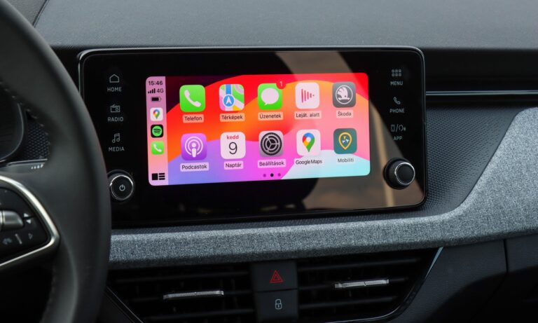Egy kétküllős kormány, mögötte az egyik monitor, amelyen különböző dizájnnal jeleníthetjük meg az információt, középen a másik képernyő, az érintős, alatta pedig a panel, amelyet az iparág egyik legkárosabb divattrendje miatt mostanában szokás eltüntetni és menülabirintusokba rejteni: a klímavezérlés. A Kamiqnál menüből is lehet állítani a légkondit, de a tekerhető-nyomkodható panel is megvan, és talán a Škoda nem is akar végleg megszabadulni tőle, mert bár több típusban a főmonitor alsó csíkjára költözött, az új Superbben több funkcióval, de továbbra is létezik.