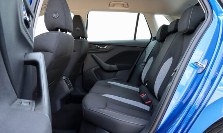 A fényes fekete rettenetből csak minimális mennyiséget használtak, szürke szövetből annál többet, ami nagyon hatásosan emeli a minőségérzetet és otthonosabbá teszi a hangulatot is. Lám, drága anyagok nélkül is el lehet ezt érni. Szintén közérzetjavító, hogy van tér, nemcsak az első, hanem a hátsó utasoknak is, plusz négyszáz liternyi űr a cuccaiknak. Ideális autó kisebb magyar családoknak – mondhatnánk, ha nem lennénk tisztában vele, hogy egy ilyen, olcsónak számító Škoda is elérhetetlen a magyar családok jelentős részének, amiről persze nem az autó tehet.