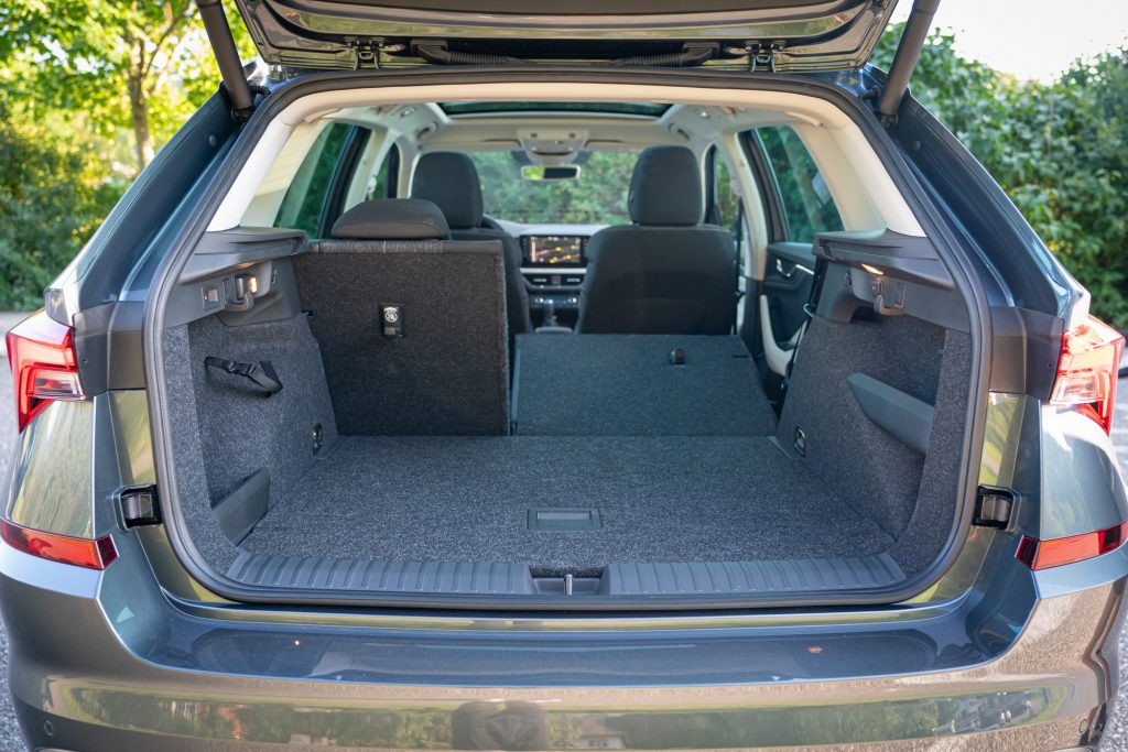 Az alaphelyzetben is 400 literes csomagtérre is büszkék, bár ő elég szűknek tűnt. (Igaz, a padló alatt még van hely – a magasabb állásban egy szintbe kerül a ledöntött hátsó támlával – és a jobb első támlát is előre lehet dönteni.)