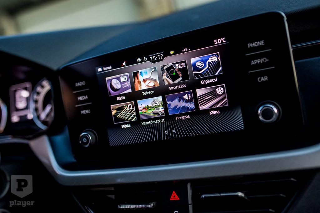 A csehek igyekeztek minden tudásukat, minden innovációt belegyömöszölni a műszerfalba, hatalmas, csodaszép képpel rendelkező, 9,2 colos képátlójú Amundsen infotainment-rendszerrel irányíthatsz mindent. Még azt is, amit nem kéne, például a klíma hőmérsékletét.