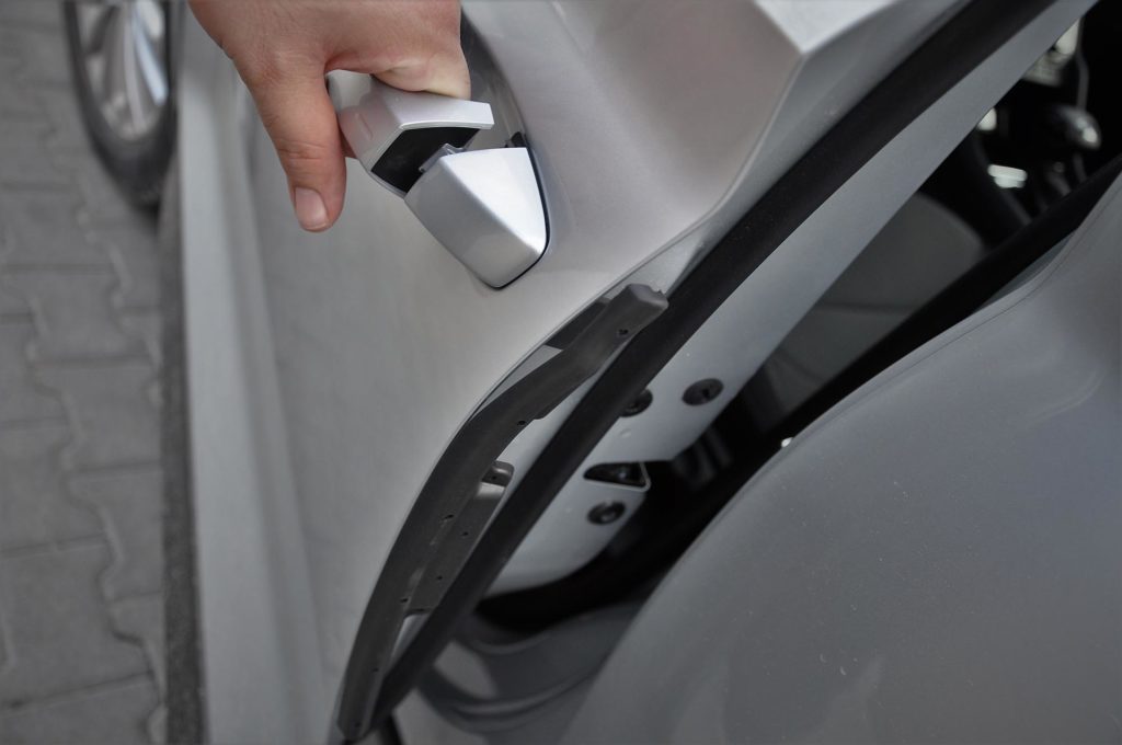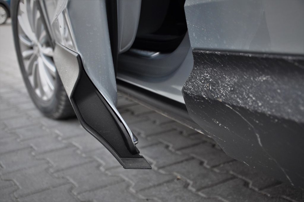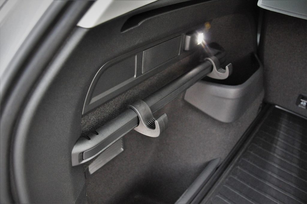 Ilyen az ajtókból kihúzható esernyő, ami nagyon jól tud jönni, ha leszakadt az ég, ehhez hasonlót pedig ma csak a Rolls-Royce-okban találsz. A Škodánál is bevetették az ajtók élvédőjét, egy függőleges gumiélt, ami alapesetben rejtve van, de automatikusan ugrik elő minden ajtónyitáskor, és ügyesen veszi elejét annak, hogy a melletted parkolónak csapd az ajtót. Ez mindkét félnek jól jön, bárcsak ilyet szereltek volna már gyárilag minden létező autóra!