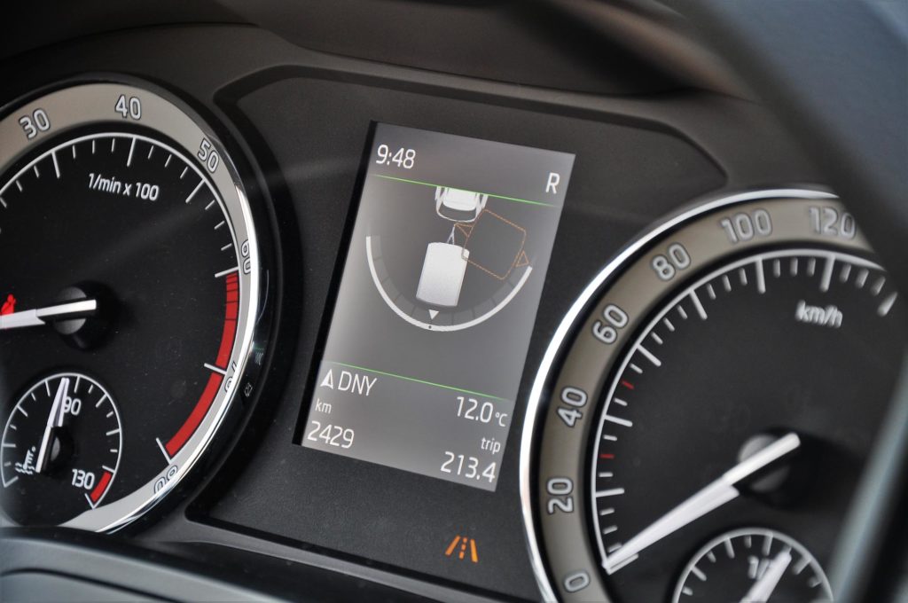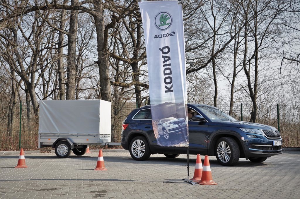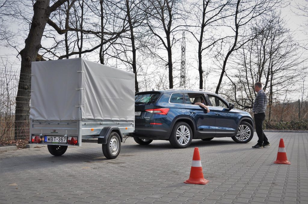 A Kodiaq azonban trélerasszisztenssel is rendelkezik, ami olyasmi, mint az önállóan kormányzó parkoló rendszer, csak ugyanazt egy pótkocsival is lazán megcsinálja. A hátsó szenzorokkal menet közben felismeri a vontatmány méretét annak kitéréséből, és utána úgy tolathatsz rá bármekkora helyre, mintha mindig is ezt csináltad volna. Csak ki kell választani a tükörállítás joystickjével, milyen szögben szeretnél beállni, a többit pedig már az autó intézi.
