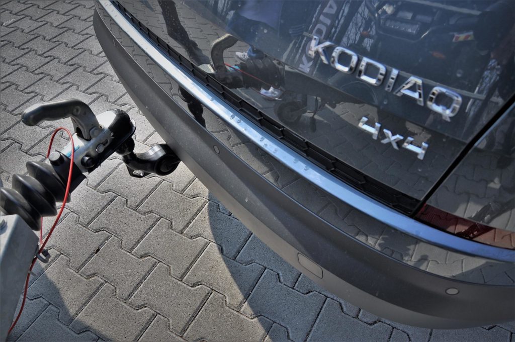 Méghozzá nagyon egyszerűen: elég megnyomni a csomagtérben lévő gombot, és az addig rejtett vonóhorog kioldódik, neked már csak a helyére kell pattintanod. Más esetben ilyenkor jön a feladat neheze, rátolatni a kocsival, de a Kodiaq ebben is segít.