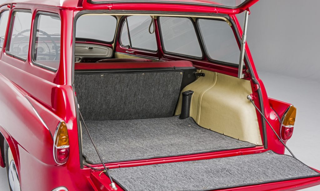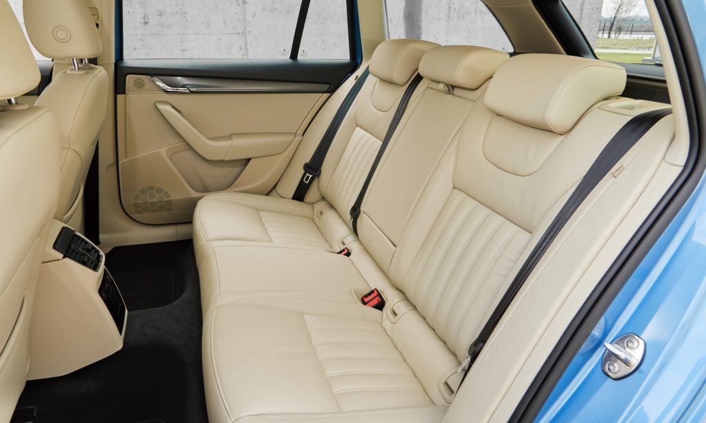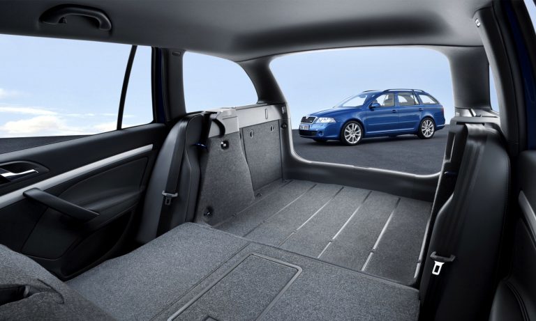 Hosszabb tetővonala alatt több fejtér jut a hátsó utasoknak, és persze több csomagot is lehet a még mindig kétajtós Octavia kombiba pakolni a kétfelé nyíló csomagtérajtón keresztül. A lökhárító alatt van egy további nyílás, mely mögött a pótkerék található, hasonlóan a Renault Dauphine megoldásához.