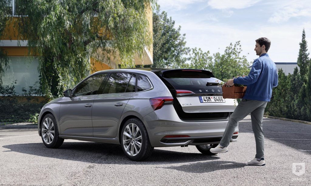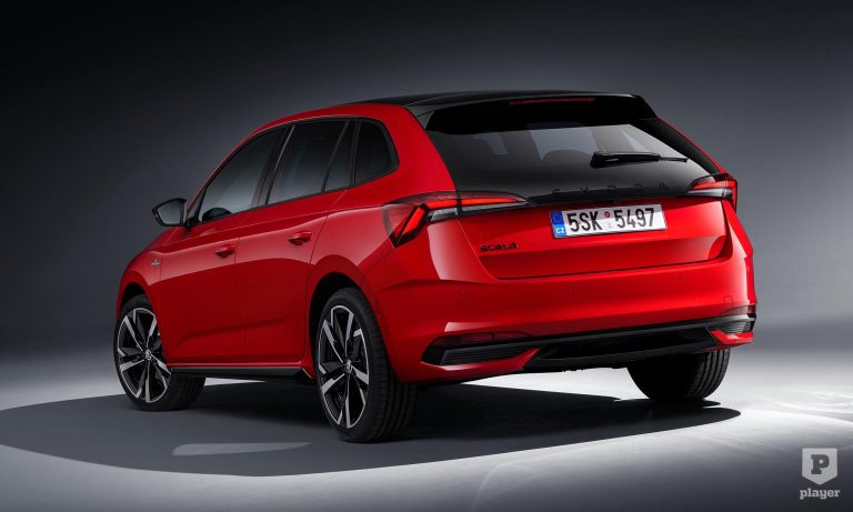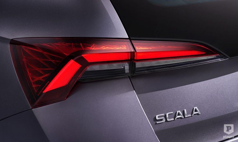 Hasonló módon újították meg a Scalát is, az új formában vágott fényszórók alá sportosabb stílusú lökhárító került, és a kompakt Škoda hátsó része is letisztultabb lett. A Scala érdekessége az opcióként választható nagyobb hátsó szélvédő, és