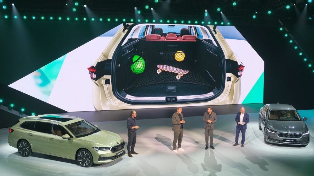 Az új Superb nagyobb, mint valaha: 4912 mm hosszú a szedán, 4902 a kombi. A csomagtér szokás szerint óriási: 630 liter a szedánban, 690 a kombiban.