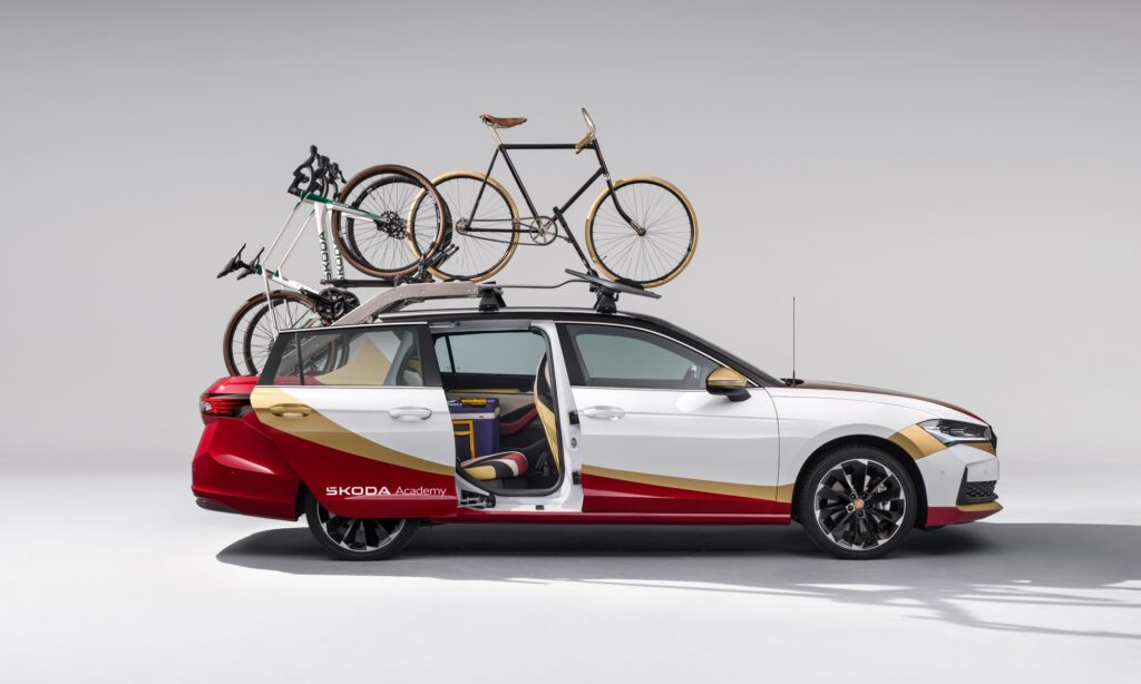Kreatív hagyománytisztelettel ünneplik a Škoda formatervező gyakornokai a márka százharmincadik születésnapját. A kombi Superbből építettek olyan versenykerékpárokat szállító autót, mely tökéletes kiegészítője egy Tour de France-hoz hasonló eseménynek.