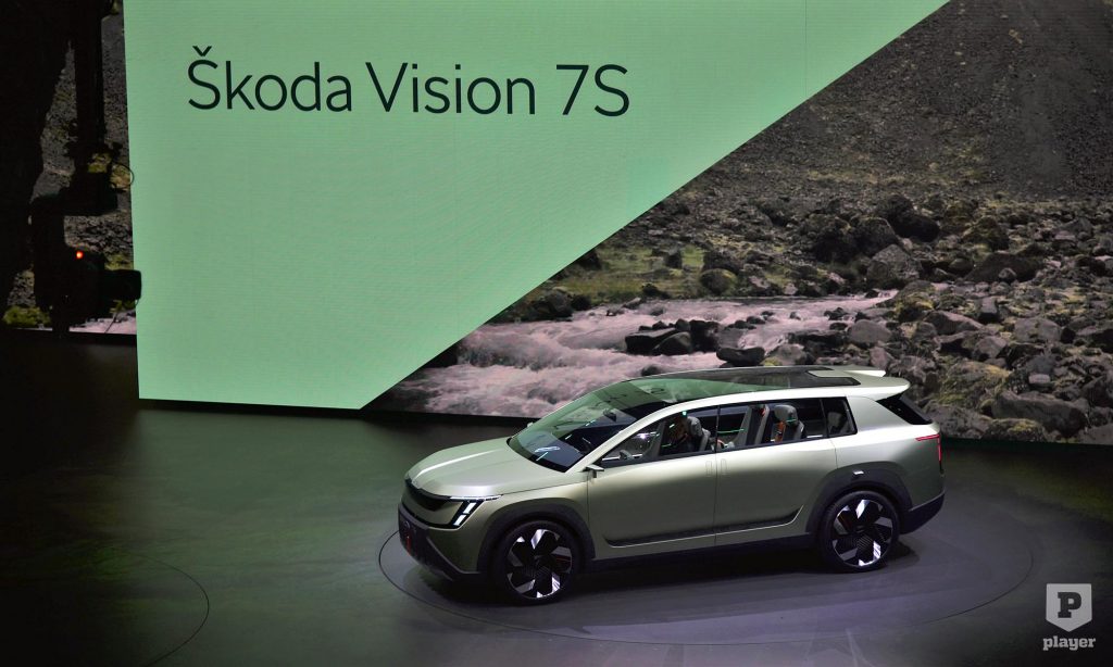 Kezdjük a tanulmányautóval, mégiscsak az volt a kézzelfoghatóbb, izgalmasabb dolog az elsötétített sportcsarnokban rendezett, látványos fényjátékkal kísért sajtótájékoztatón. A Vision 7S egy 6+1 üléses elektromos szabadidőautó-egyterű, amely ebben a formában szinte biztosan nem válik majd piaci modellé, kiválóan alkalmas viszont arra, hogy a gyártó megmutassa azokat az új stílusjegyeket és megvillantson néhány olyan új Simply Clever ötletet, amelyek nagyon is rá-, illetve bekerülnek majd a közeljövőben érkező új Škodákba.