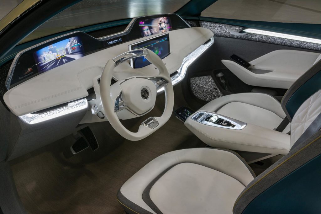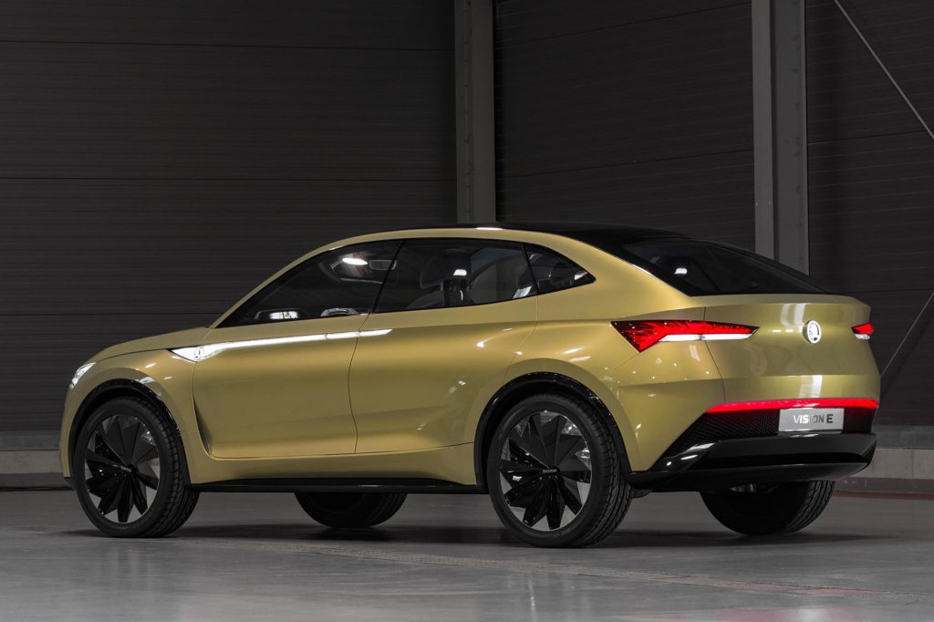 4,69 méteres hosszával a Vision E körülbelül akkora, mint egy Kodiaq, de lejtős tetejével sokkal sportosabbnak néz ki nála. Gyors is, de nem úgy, mint ahogyan gondolnád, hiszen előre és hátra is egy elektromotor került, összesen 306 lóerős teljesítménnyel. Az akkumulátor méretét nem árulták el, de azt igen, hogy az 500 kilométeres hatótávolság elérése a cél.