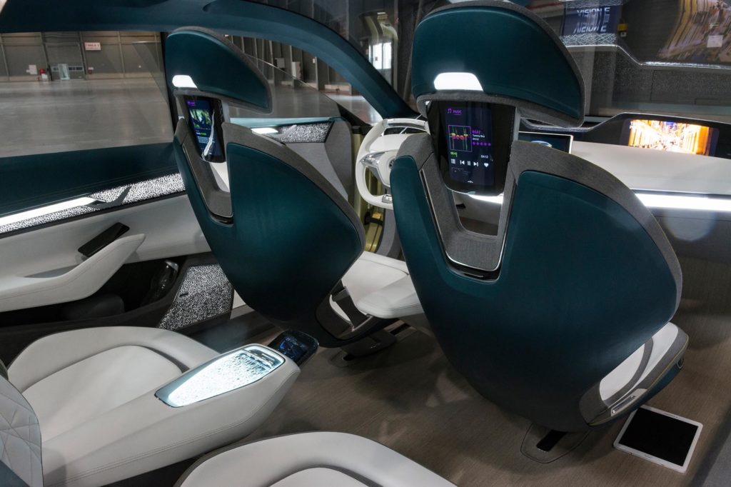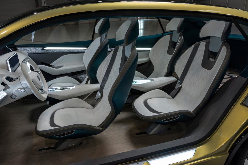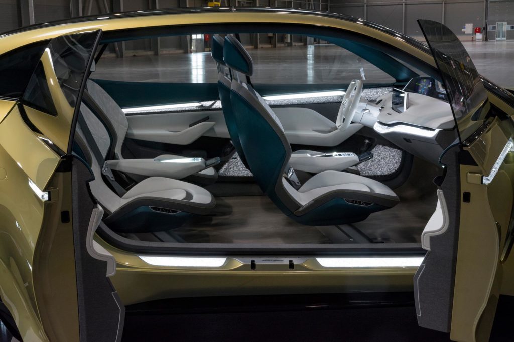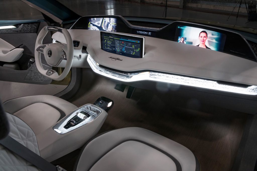 Most pedig nemcsak számítógépes grafikán, hanem igazi fényképeken is láthatod, hogyan néz ki a Škoda jövőautója. A látványos fényű lámpák, a rafináltan megvilágított utastér a négy különálló üléssel és a színes képernyőkkel teli műszerfal csak éppen annyira futurisztikus, hogy már bele tudd képzelni a gyártásba kerülő modellt.