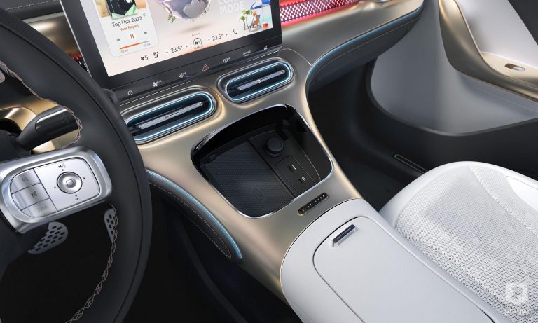 A keret nélküli ablakokkal, a rejtett kilincsekkel, a kormánykerék mögé került műszeregységével és a középkonzolon lévő nagy érintőképernyőjével, valamint az érdekes formákkal és igényes anyagokkal a Mercedes kínálatát egészíti ki az új Smart, ami akár 1600 kilogrammot vontathat is.