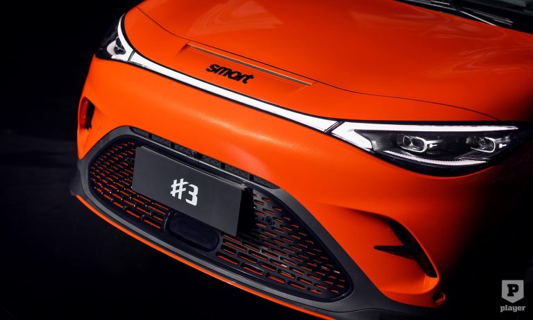 A mercis dizájn nagyon hasonló az #1-éhez, de a Smart #3-nak lejtősebb a tetővonala,