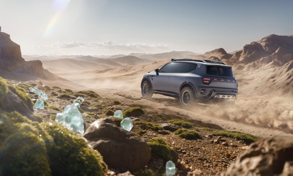 Távol tartja a szélvédőre veszélyes faágakat a két drót, mely a gépháztetőtől fut a tetőcsomagtartóig. A Smart Concept #5-ön nagy ellenállású terepgumik vannak, de több mint 100 kWh kapacitású akkumulátorával akár 550 kilométert is képes megtenni egy feltöltéssel. A töltés gyorsaságát a 800 voltos rendszer garantálja.